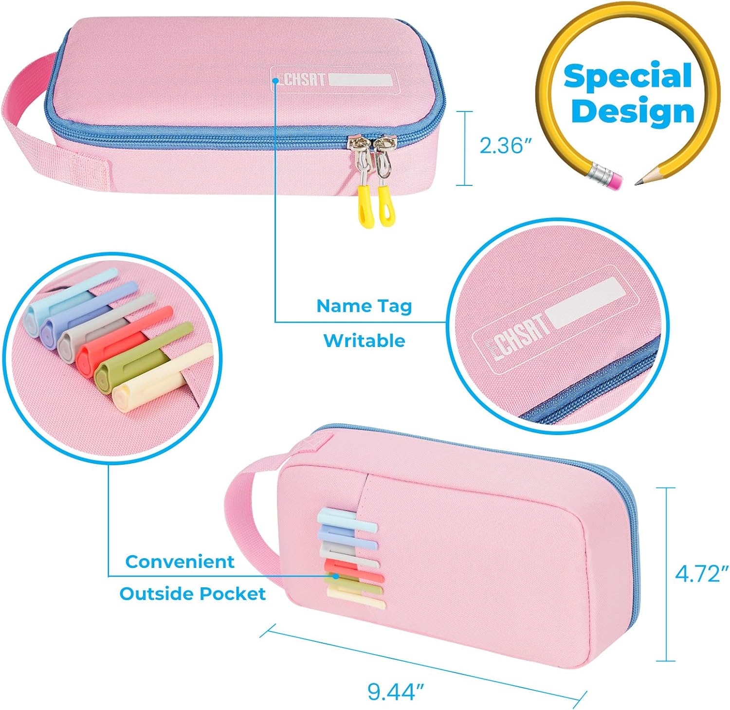 ECHSRT Big Pencil Case, Aesthetic Portable Zipper Pencil Bag with Hidden Pocket, Special Pouch for Men Women Adults, Stationery Organizer Pen Cases for Office Travel, Pink