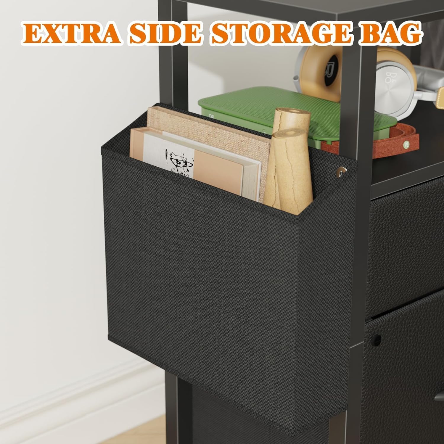 2 Drawer File Cabinet with 24'' Extended Desktop, Mobile Filing Cabinet, Rolling File Cabinet with Side Bag, Fabric Drawer, Fits A4 Size, Home Office, Black