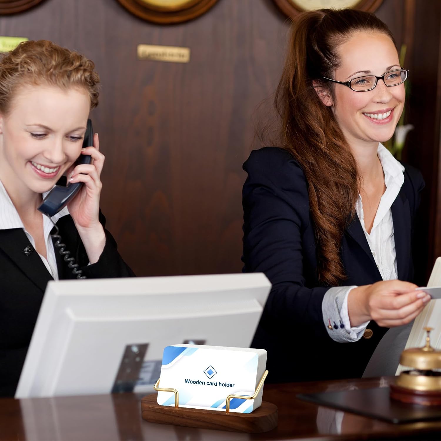 Amyhill 2 Pieces Wood Business Card Holder for Desk Wooden Business Card Display Stand Postcard Holder for Office Home Desktop(Brown)