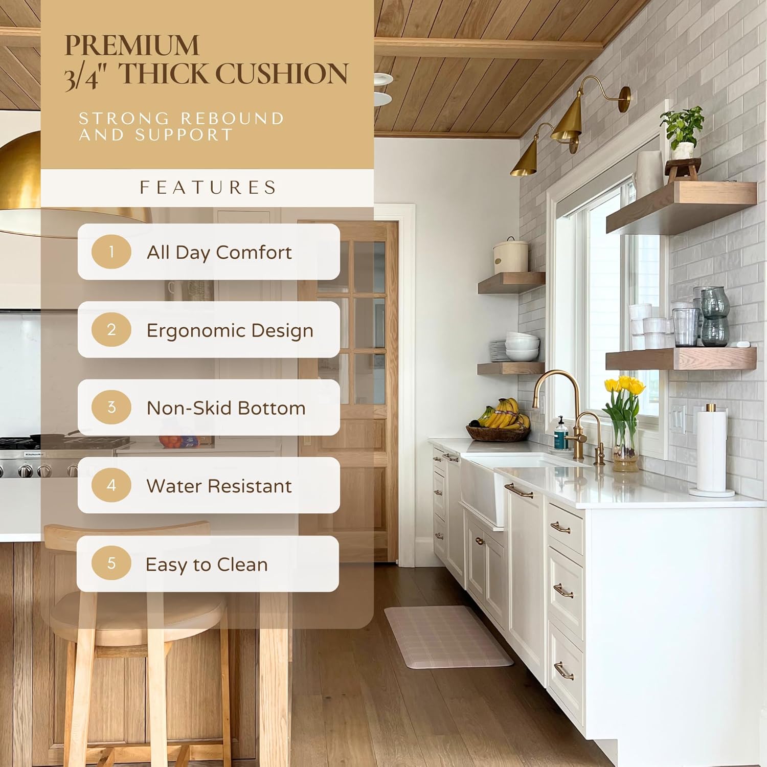 - DESIGNER ELEMENT: Elevate the aesthetics of your home with our beautifully curated anti-fatigue kitchen mats. With practical and timeless designs, these premium standing mats seamlessly blend beauty with functionality elevating your home, standing desk, work station, and any space where you stand.