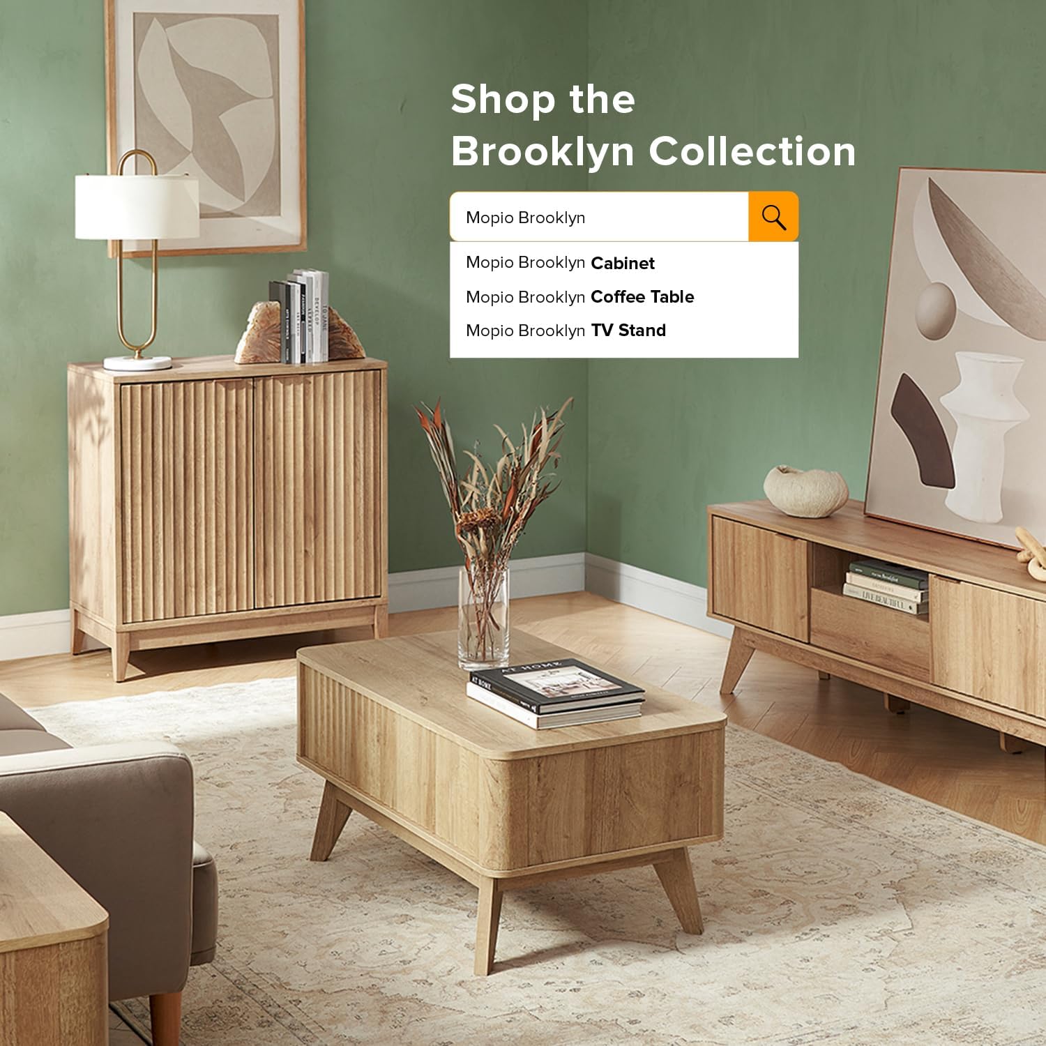 mopio Brooklyn Storage Cabinet, Modern Farmhouse Entryway Accent Case, Buffet Sideboard, Console Table, Credenza, Wood Modular Organizer with Doors & Shelf, Fluted Panel Cupboard (Oak, Single)