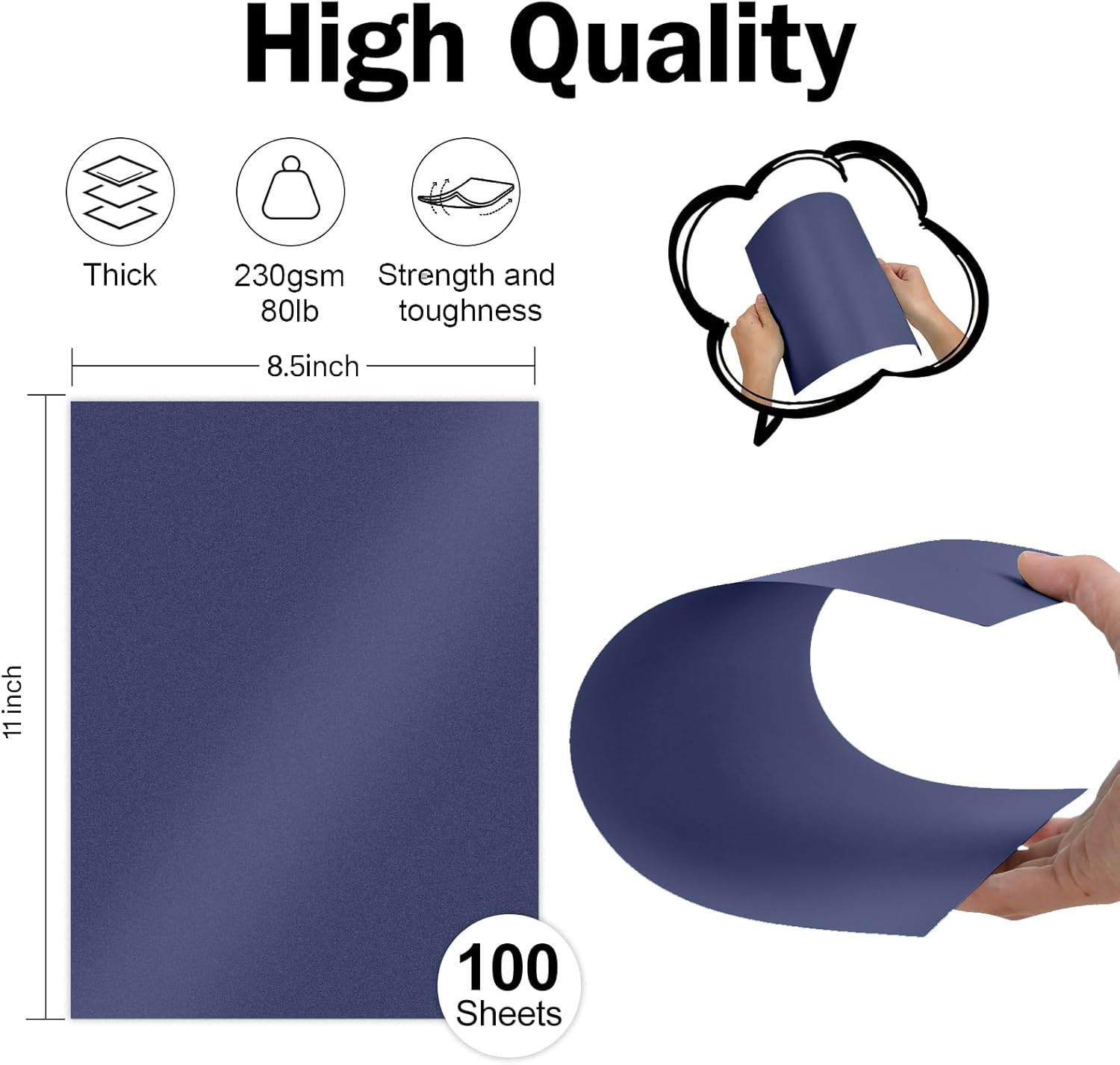 - Paper Dimension: Each package includes 100 sheets of navy blue paper, measures 8.5 x 11 inches in size, 230 grams in weight