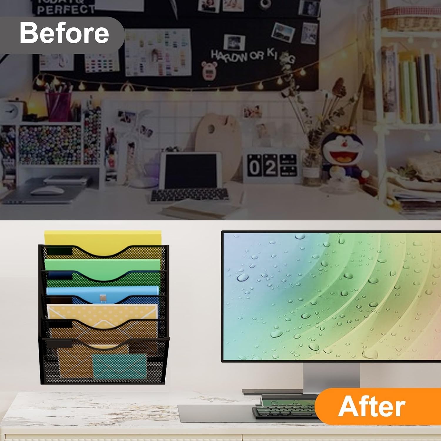 Kuntine.B Wall File Organizer Office Hanging Magazine Holder Wall File Organizer for Office Home (Black, 5 Tier)