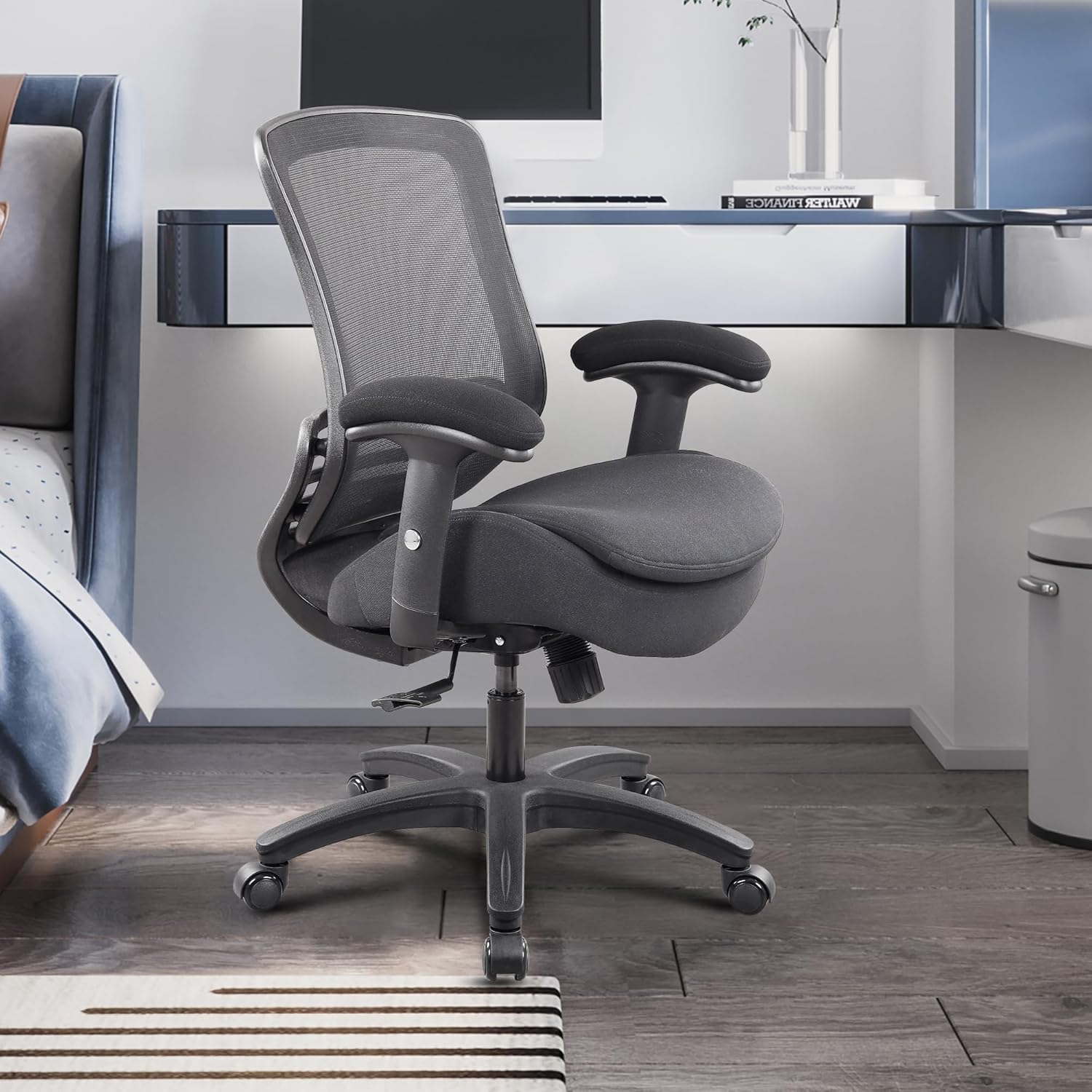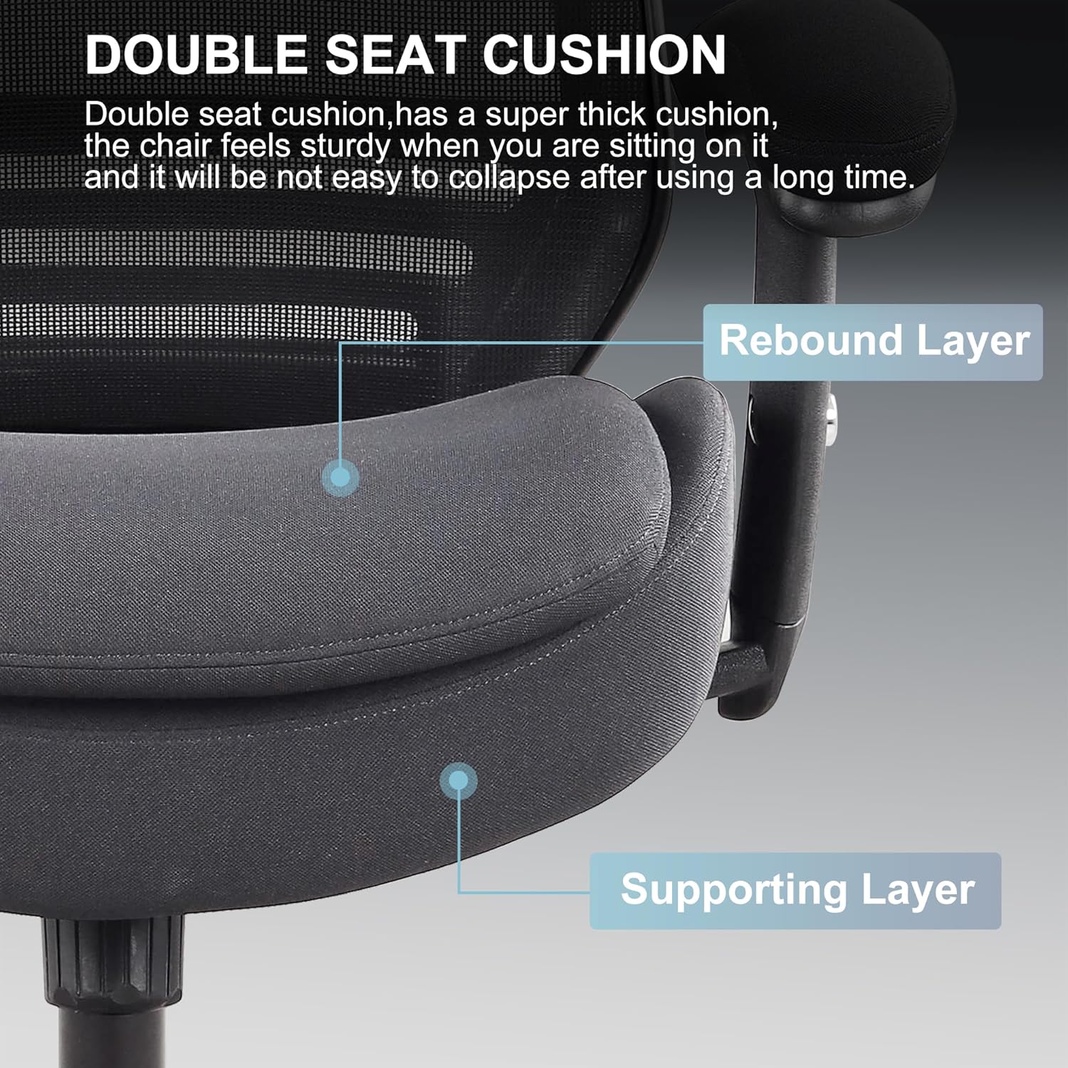 400lbs Ergonomic Office Chair with Double Seat Cushion and Soft Armrests for Executive Computer Desk with Built-in Lumbar Support (Black)