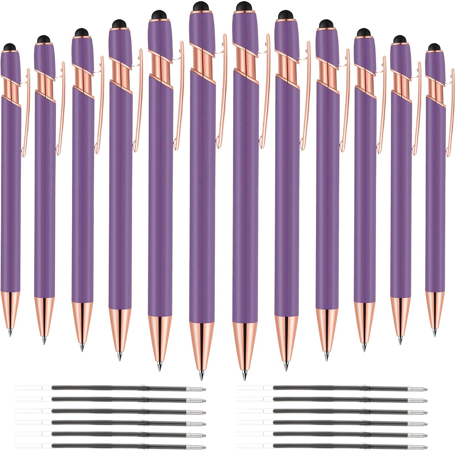 12 PCS 2 in 1 Stylus Ballpoint Pen with Stylus Tip, 1.0 mm Black Ink Metal Pen Stylus Pen for Touch Screens (Light Purple)