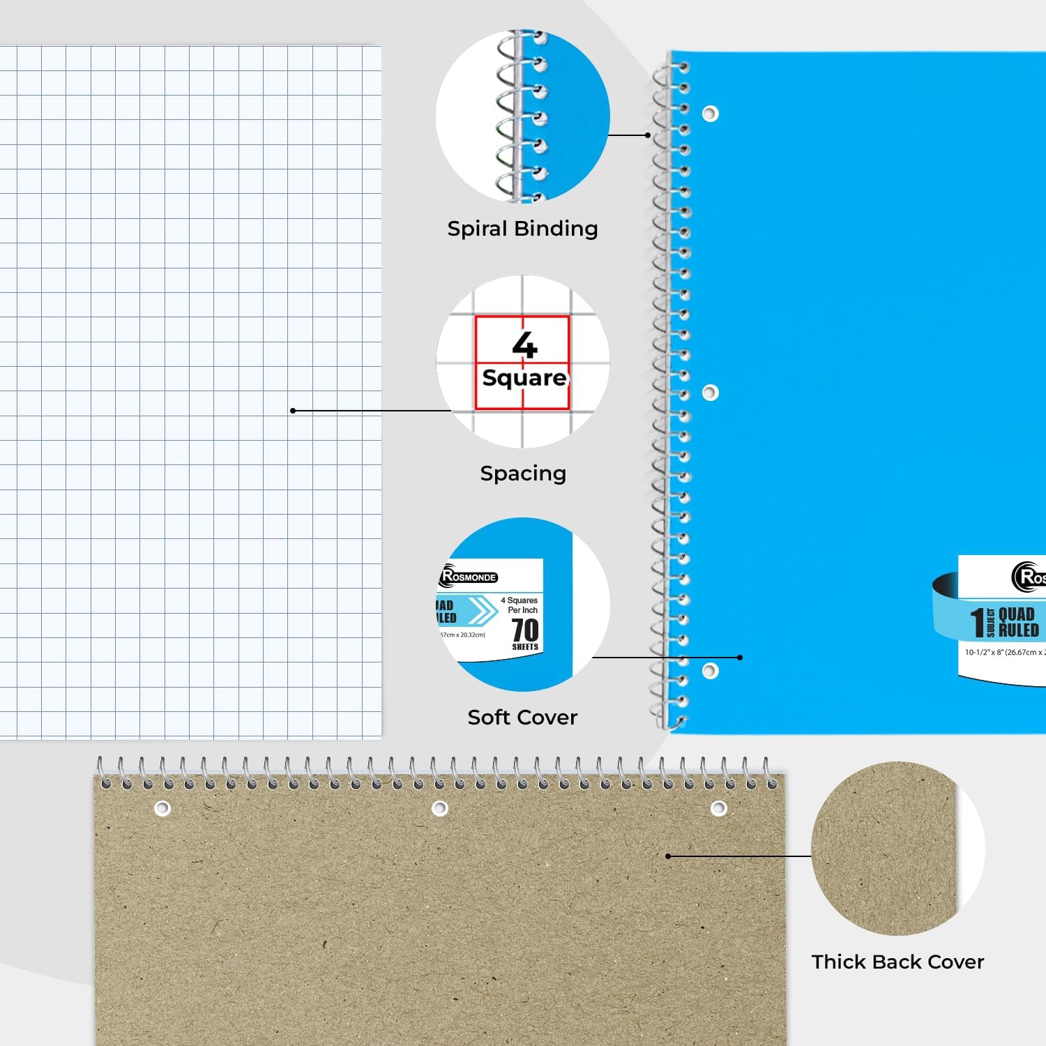 - GET ORGANIZED: Our 1 Subject Spiral Graph Ruled Notebooks are perfect for work and school and can also record your daily life or the interesting things during your travel. Rosmonde spiral journals fully meet your daily needs. Each notebook features an assortment of fun, bright colors that make them easy to identify, so you can quickly find the notebook you need.
