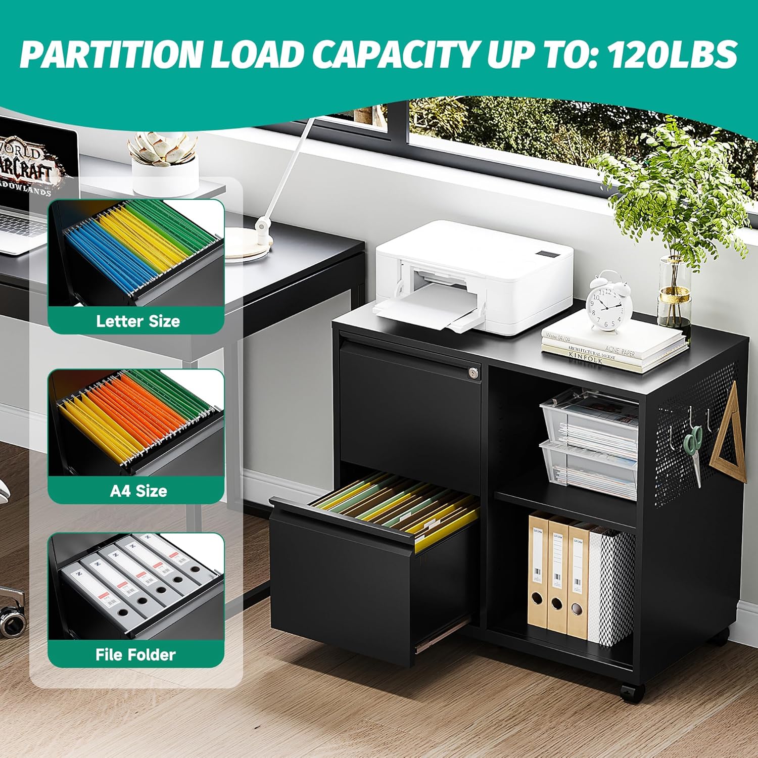 - ✔️☆【Easy to Move Storage Cabinet】: The mobile filing cabinet is equipped with 4 swivel casters (2 lockable, 2 standard), allowing you to move the filing cabinet freely anytime and anywhere. Secure casters provide stability and can be secured next to or under a table. It rolls smoothly, prevents scratches, and protects the floor. It is suitable for various environments such as study rooms, offices, homes, and classrooms.
