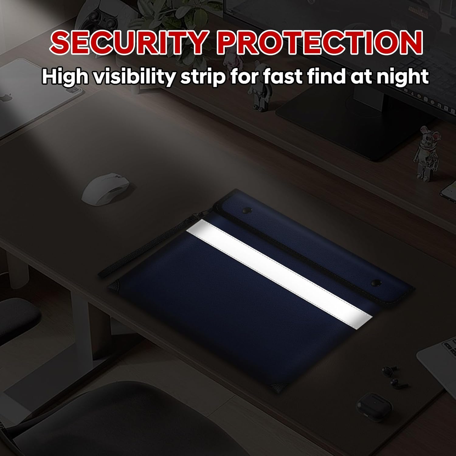 5200°F Heat Insulated Fireproof Document Bag with Zipper,13.9”x10.6” Water Fire Proof Pouch with Reflective Strip,8 Layers of Protective Materials Fireproof Money Bag for Cash,Jewelry(Blue)