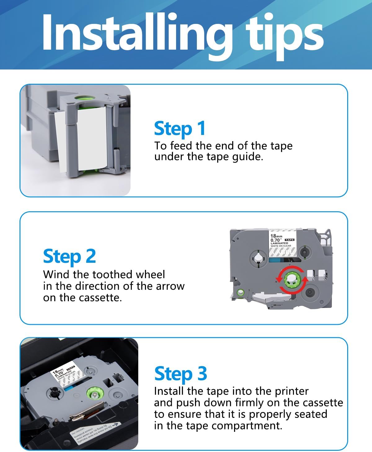 - Compatibility: The 18mm label tape is compatible with a wide range of Brother label printer, including the P-touch Cube Plus, PT-D600, PT-D610BT, PT-P900W, PT-P950NW, PTD600VP, PT-E550WVP, PT-P750W, PT-P800W and more