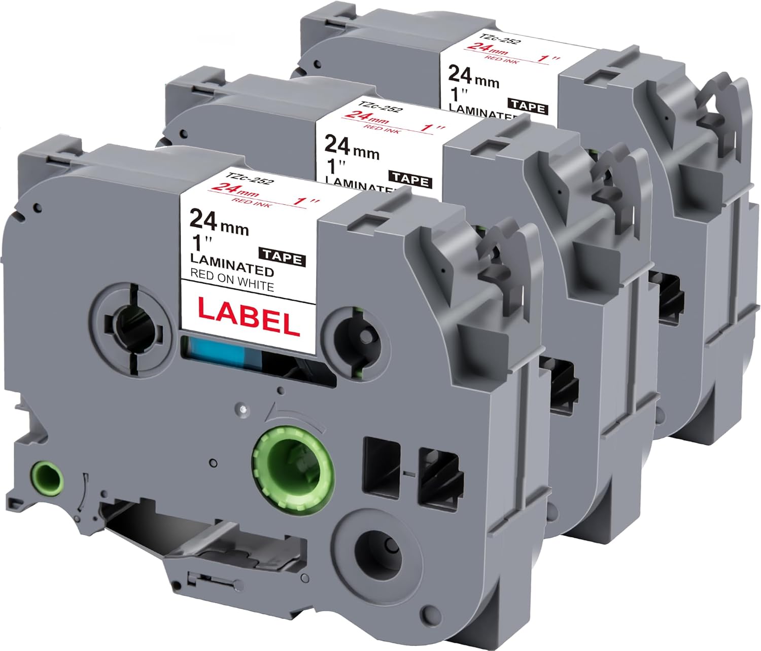 Weemay 3 Pack TZe252 24mm Red on White Laminated Label Tape Compatible with Brother Label Maker Tape TZe-252 TZe 252 TZ-252 TZ252 for PTouch PT-E500 PT-D600 PT-P750W PT-P900W Printer, 1 in x 26.2 ft