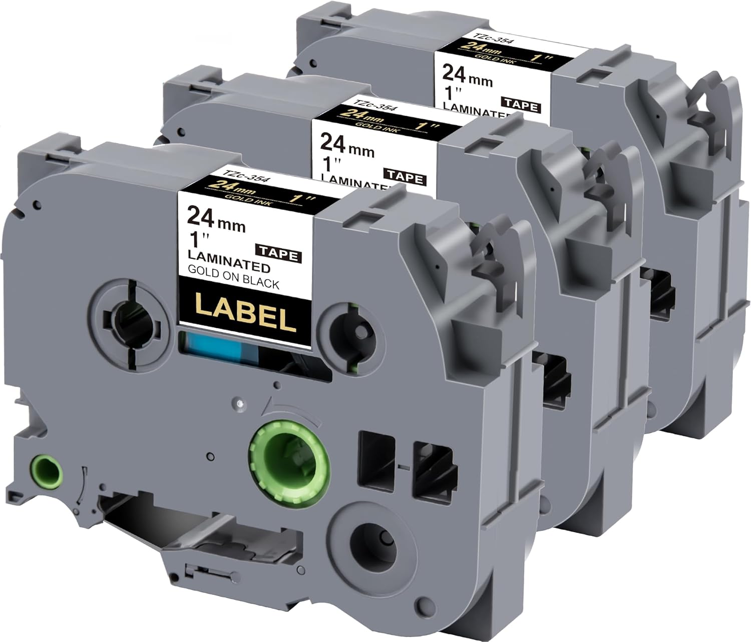 Weemay 3 Pack TZe354 24mm Gold on Black Laminated Label Tape Compatible with Brother Label Maker Tape TZe-354 TZe 354 TZ-354 TZ354 for PTouch PT-E500 PT-D600 PT-P750W PT-P900W Printer, 1 in x 26.2 ft