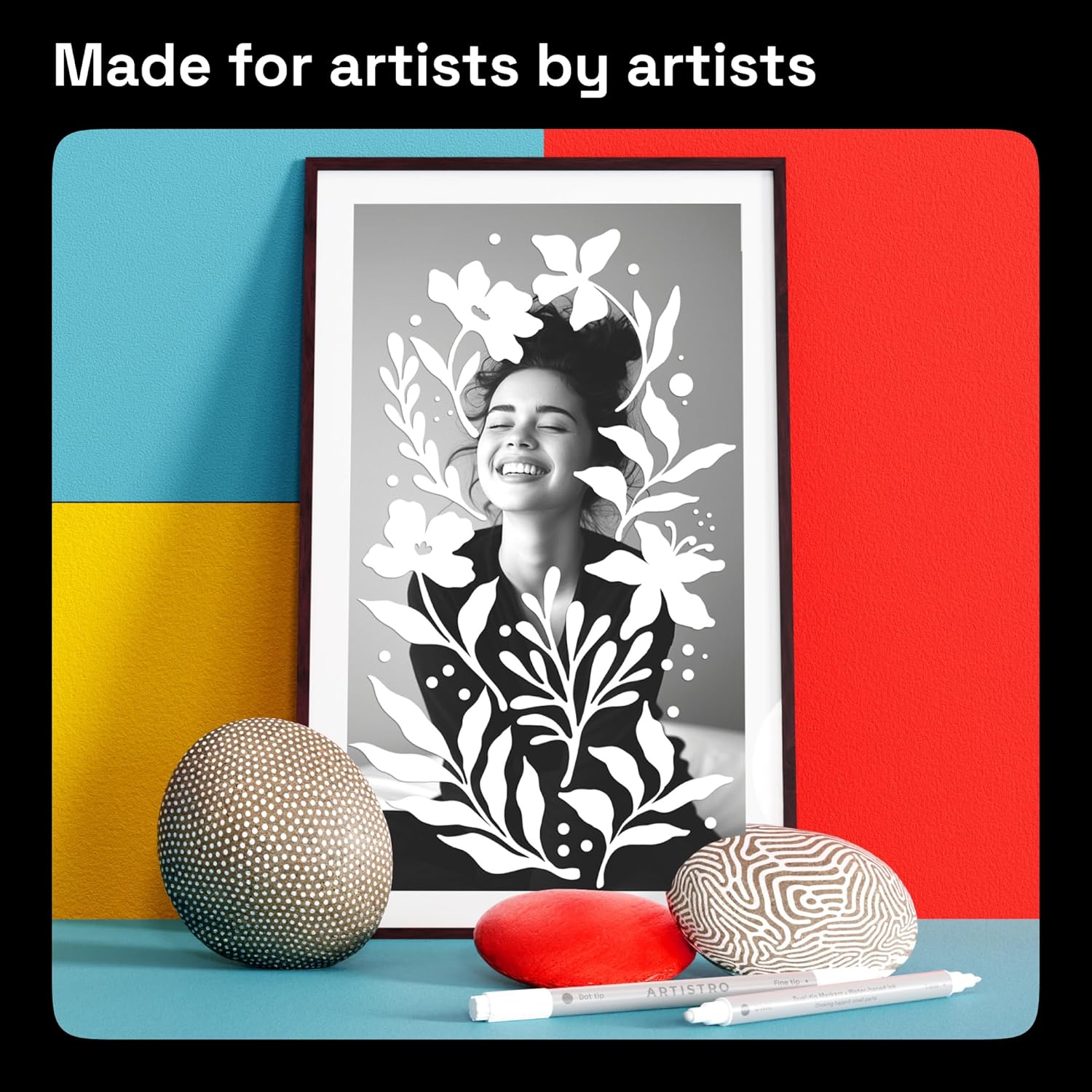 ARTISTRO 2 White Dual-Tip Acrylic Paint Pens - Multisurface Markers for Fabric, Plastic, & More, 5mm Dot + 1mm Fine Tips
