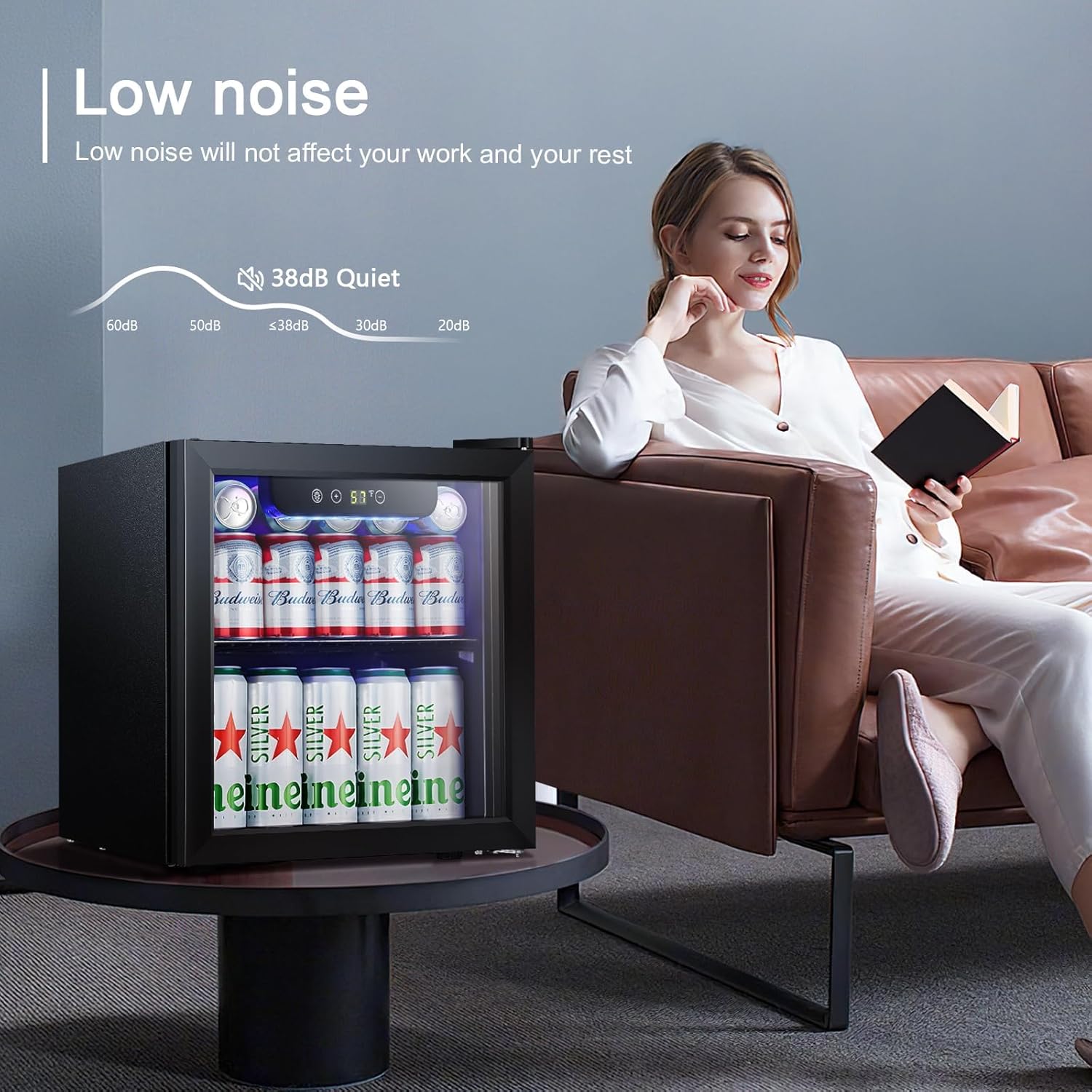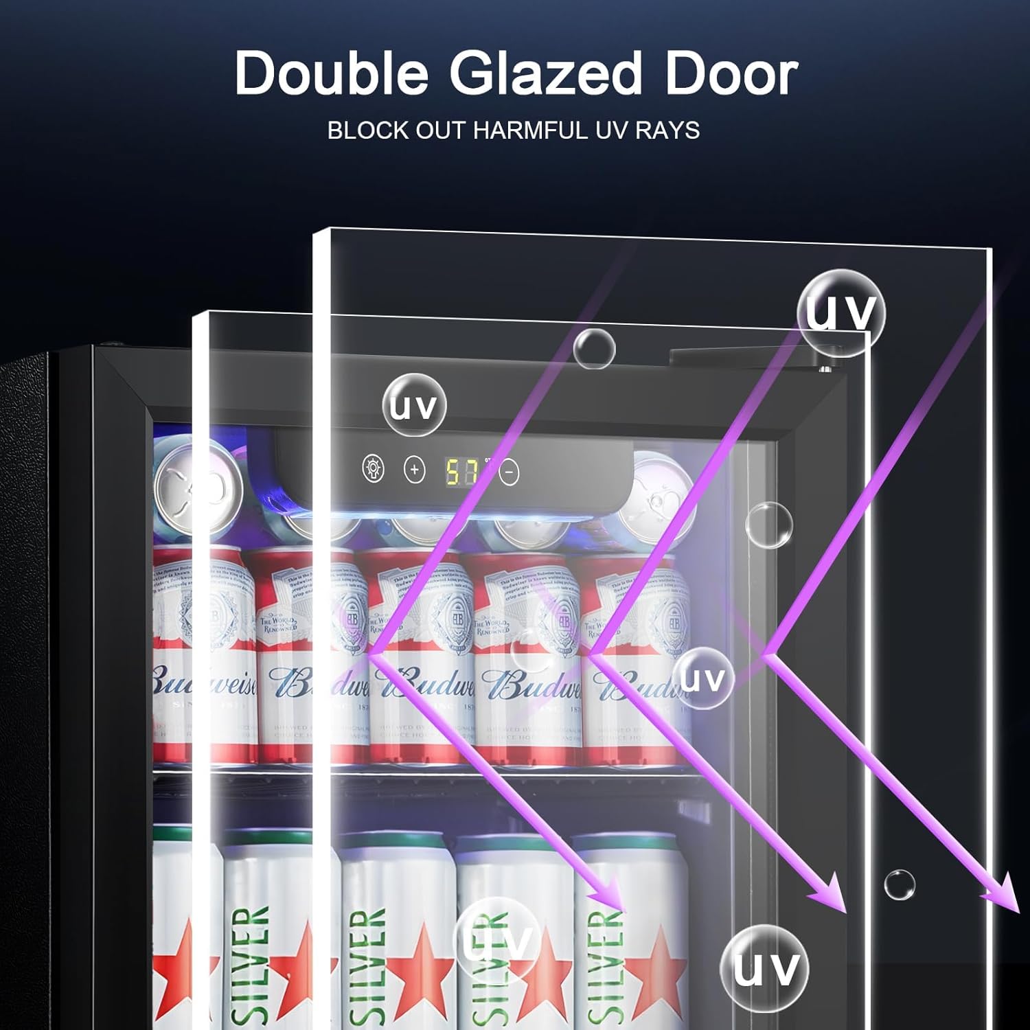 - BLUE LIGHT and HUMIDITY: With its reinforced glass door with air tight seal and help to maintain an ideal humidity level, this beverage refrigerator gives you a compact and modern design perfect for your living room. Blue soft LED interior lighting not only beautifully showcases the wine but won’t damage the wine.