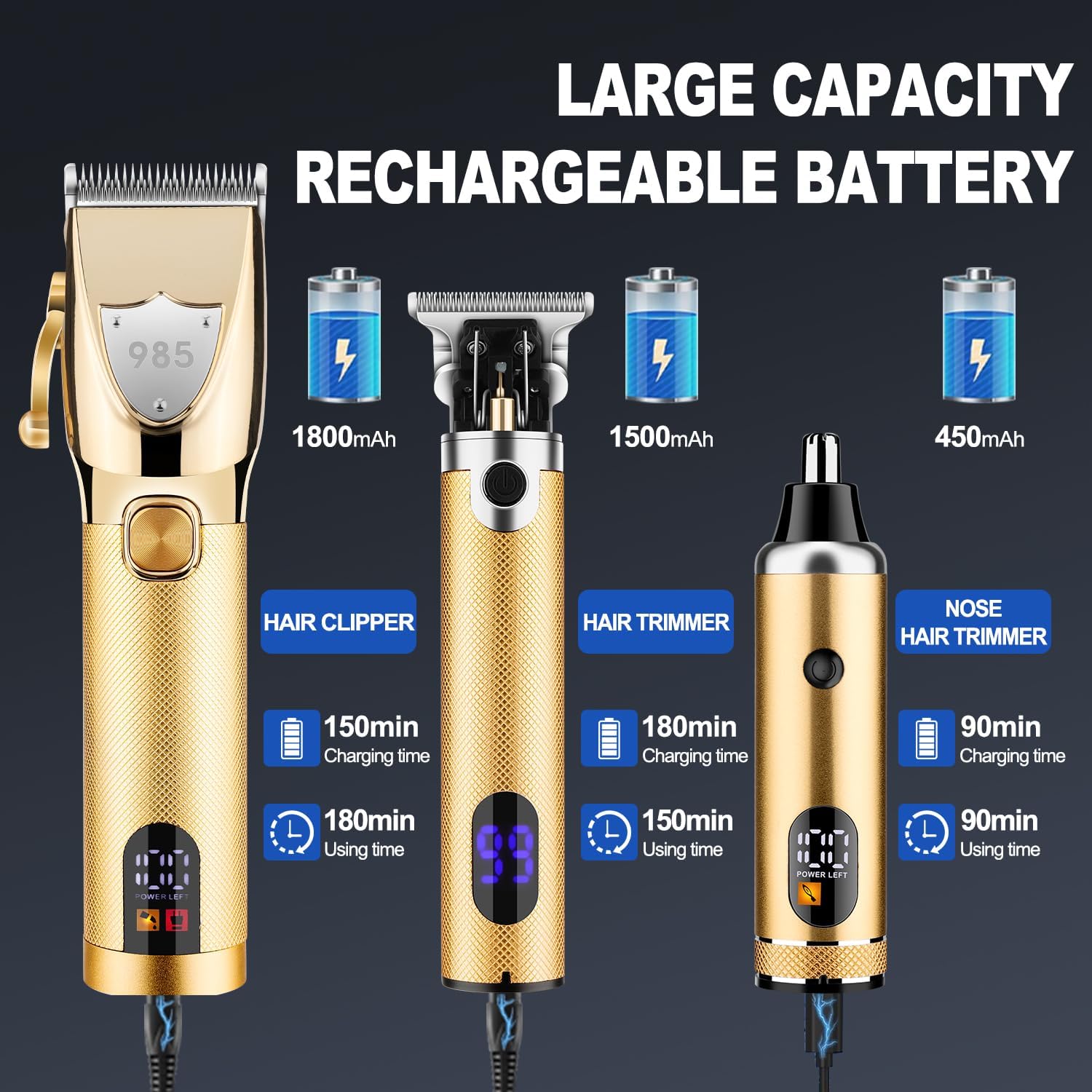RESUXI Hair Clipper for Men T Blade Zero Gapped Nose Hair Trimmer Set,Professional Cordless Barber Clippers Hair Cutting Machine Haircut Grooming Kit,Gold