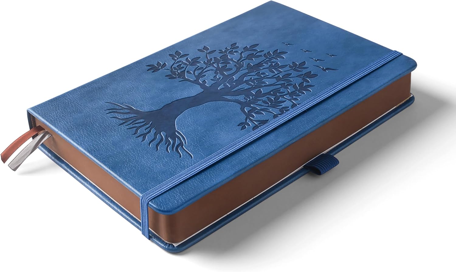 ZXHQ B5 360 Pages Lined Journaling Notebooks with Pen, Journals for Women Men Writing Notebook, Tree of Life Design, Brown Edge, Fine Inner Pocket - Blue