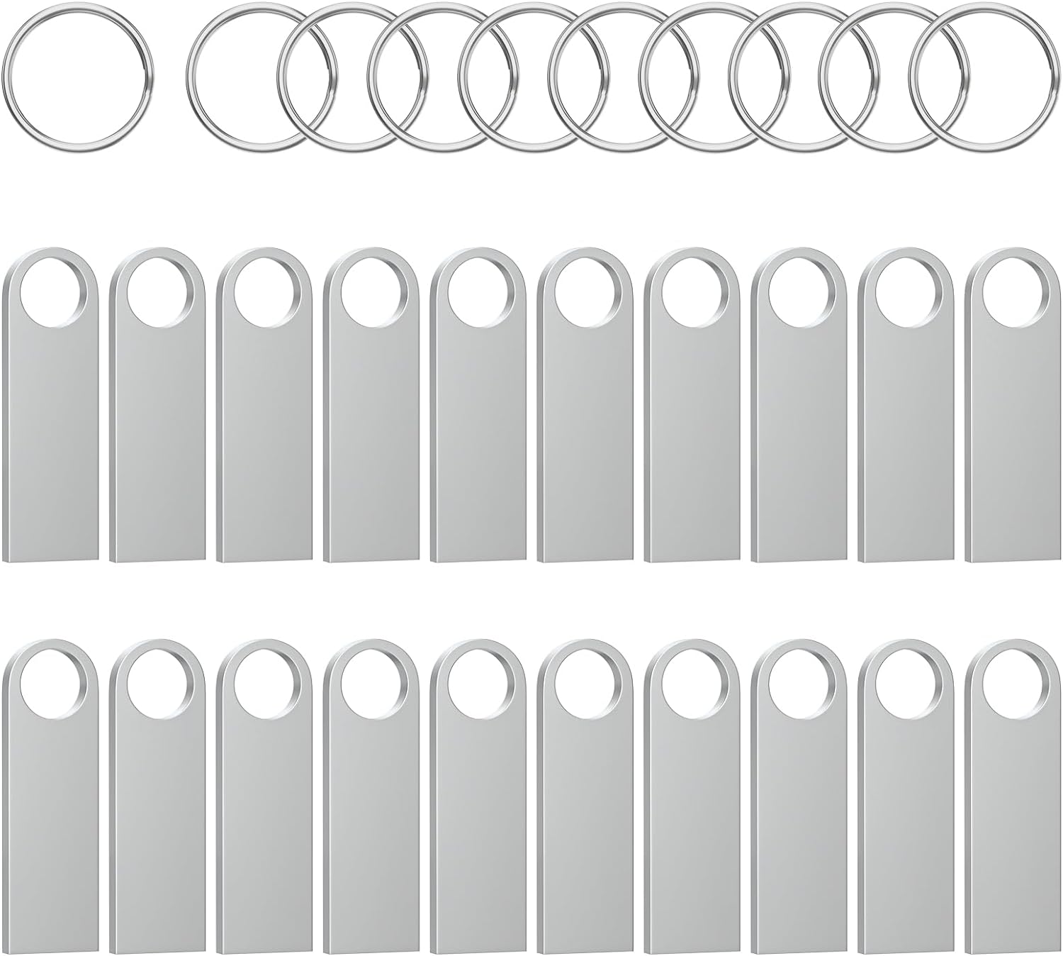 ABLAZE 4GB Flash Drive 20 Pack, Metal USB 2.0 Thumb Drives with Keychains USB Sticks Pendrives (Sliver)
