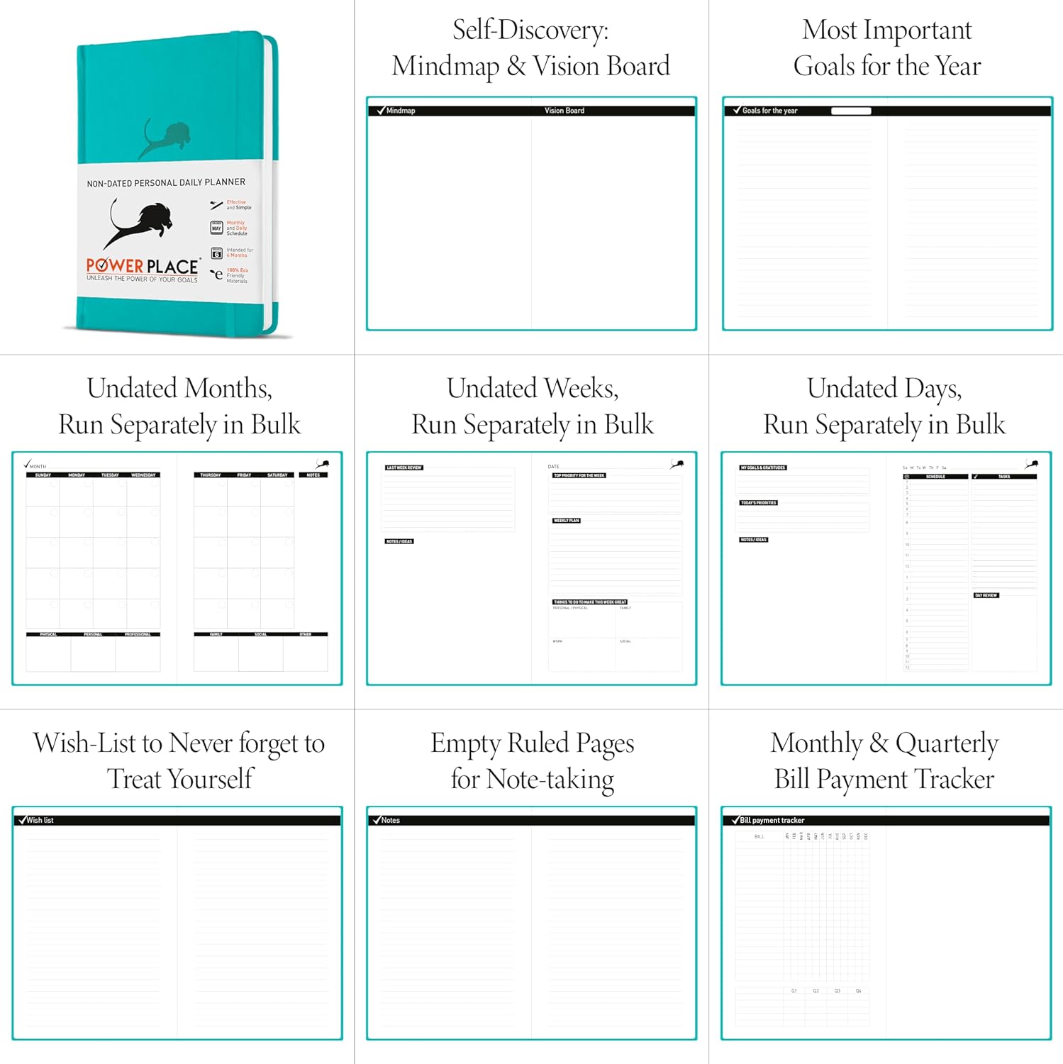 Daily Planner, Calendar and Gratitude Journal to Improve Time-Management, Productivity & Happiness | Vegan Leather Hardcover Organizer with Blank Dates, Undated 6 Months 24 Hour Agenda