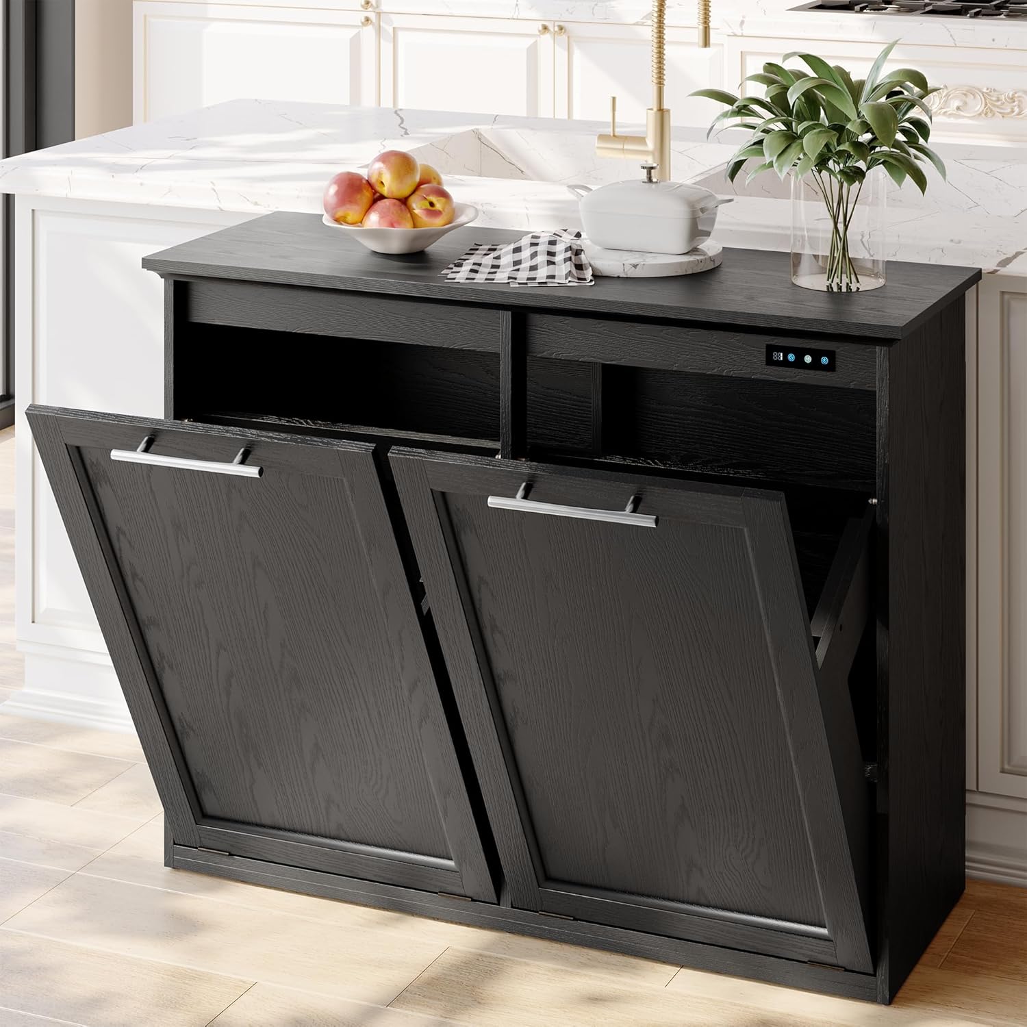 - 【Deodorising Function】Wooden tilt out trash can cabinet with deodorising features are great for hiding waste, tilt-out design will prevent dogs from rummaging around and prevent waste from polluting the air and environment.