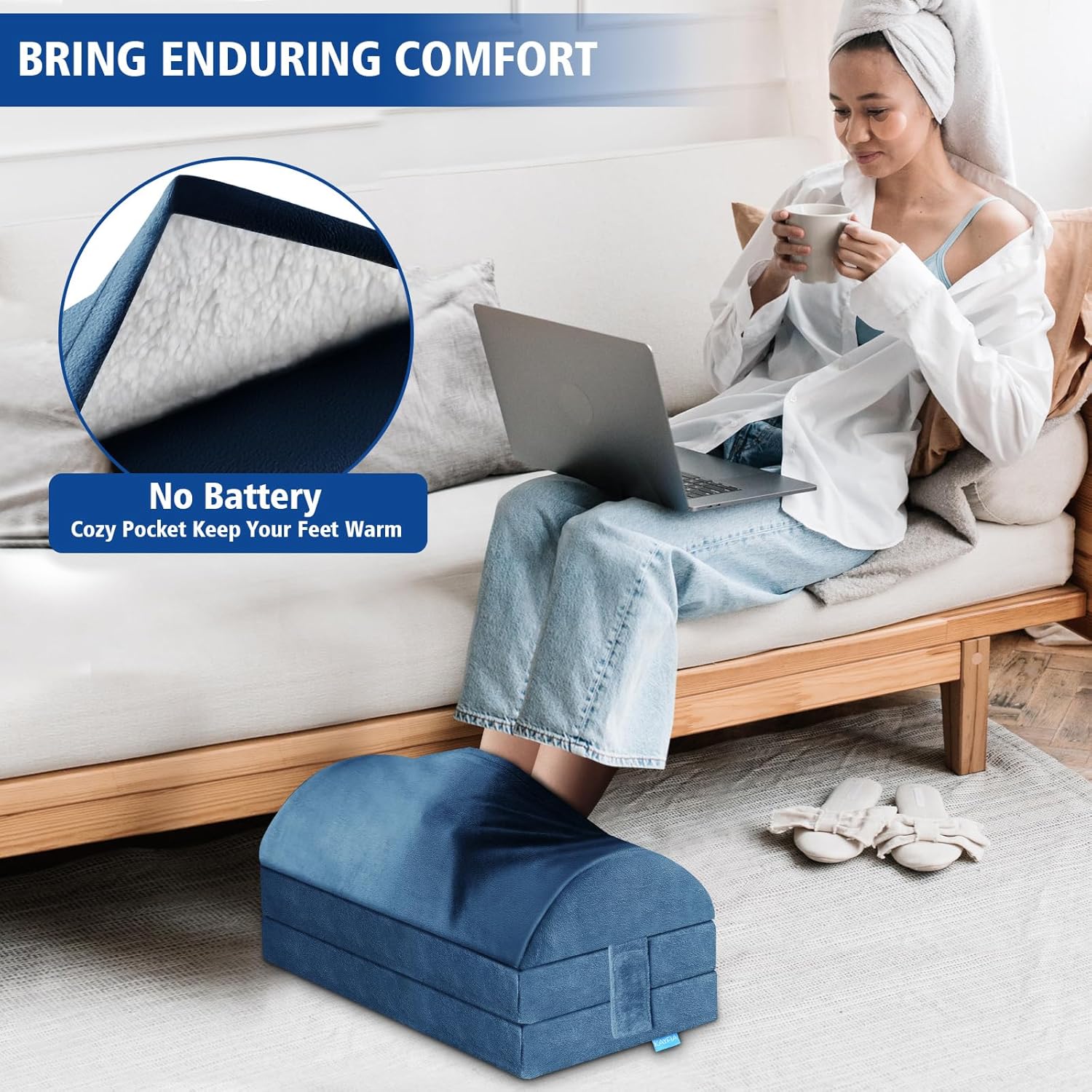 - [Warm Footrest] Coming with a built-in plush pocket, foot rest under desk for office use requires no electricity or batteries and can keep your feet warm and comfortable even in cold weather. The footrest pillow for chair is sure to become your preferred way to maintain comfort while working from home or the office.