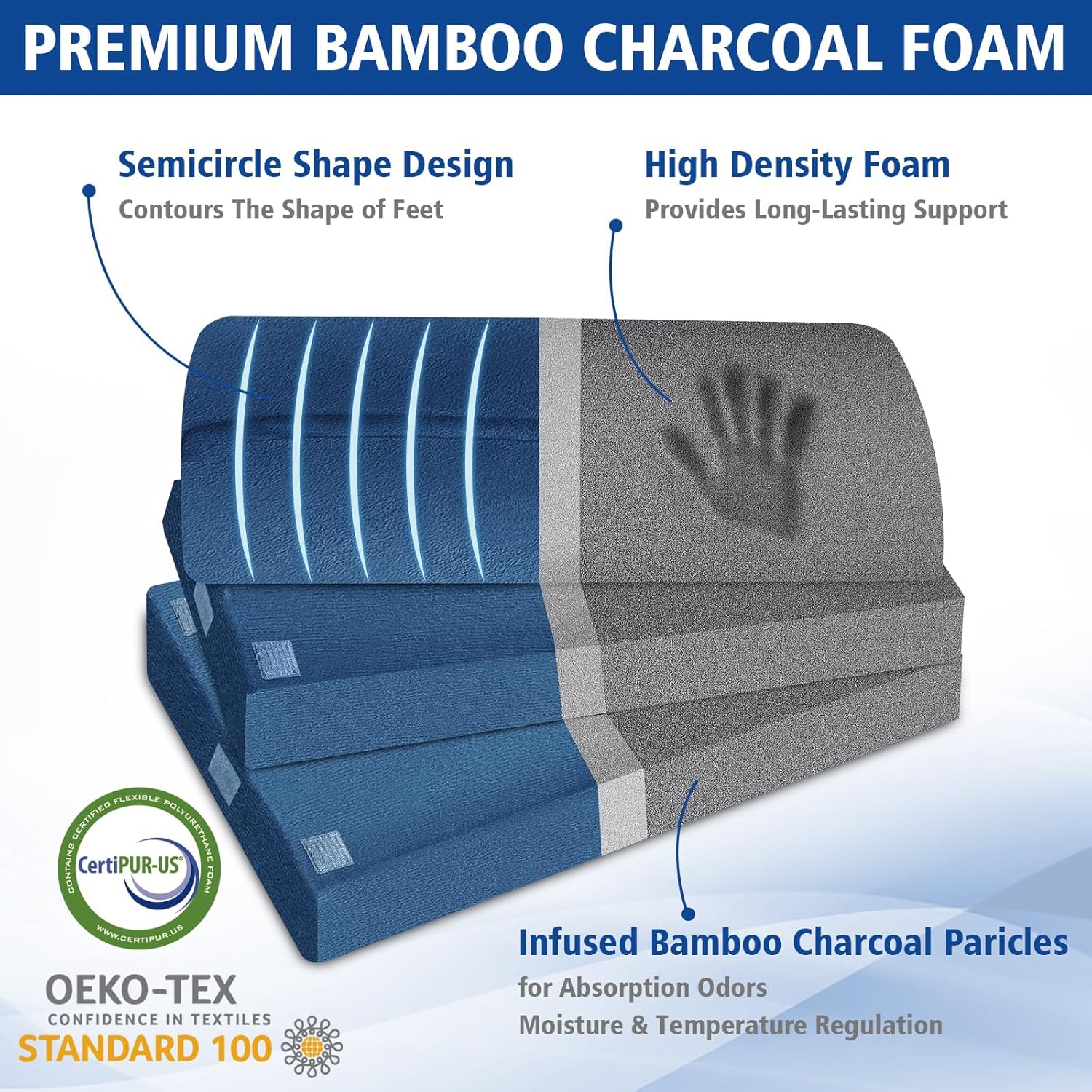 - [Supportive High Density Foam] The foot rest under desk utilizes high-density foam infused with bamboo charcoal particles. Compared to ordinary foam, high-density foam provides better support, less deformation, and greater resilience. Additionally, the filled bamboo charcoal particles effectively regulate temperature and odors.