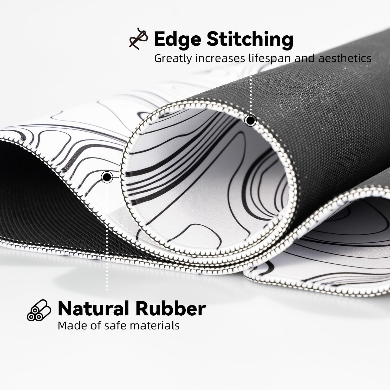 - Natural Rubber with Edge Stitching: Crafted from high-quality rubber material and enhanced with neatly stitched edges, this mouse pad delivers unparalleled comfort and durability.