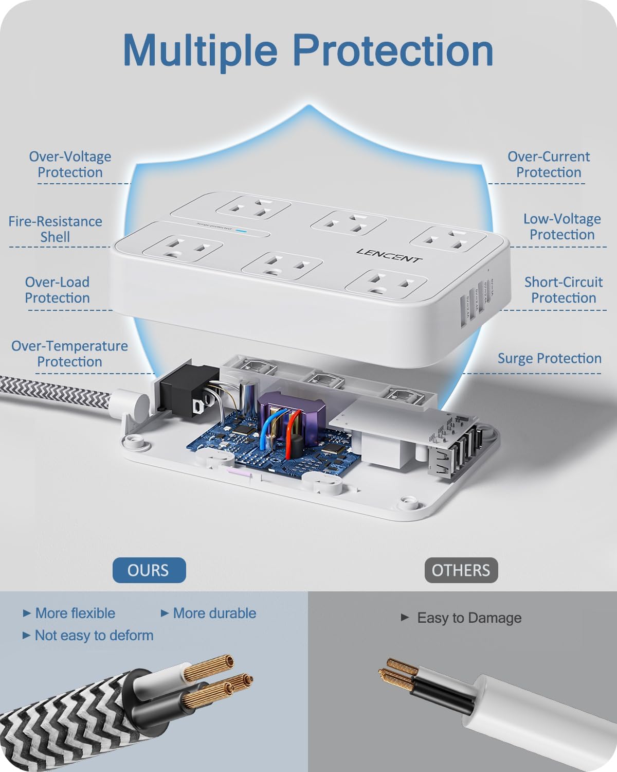 - Superior Safety: 1050J surge protector and 13A integrated circuit breaker with FCC certificated and fire-resistance PC shell, protect electronic product from surge, spike and overload. The reliable overload switch will trip off automatically to prevent your devices and your home from over-voltage, overload, over-current, short-circuit and etc. Polarized plug provides a measure of safety for the appliances and house wiring to be aligned in terms of polarity. It is perfect for older houses.