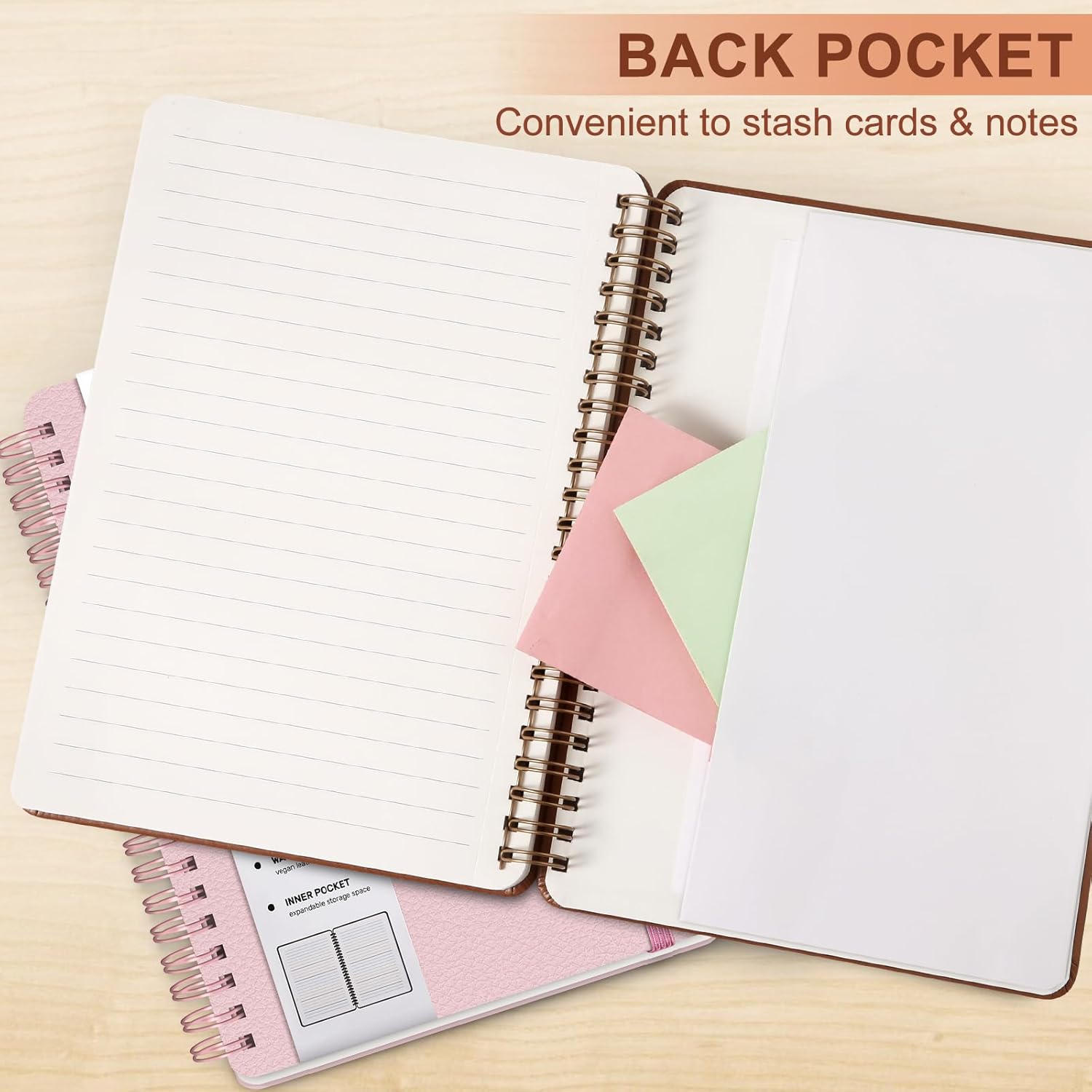 Lined Spiral Journal Notebook, A5 Hardcover Leather Notebook for Work, 5.7''×8.2'', 100GSM Thick Paper Spiral Bound Journaling Notebooks for Women & Men Office School Note Taking Business, Brown