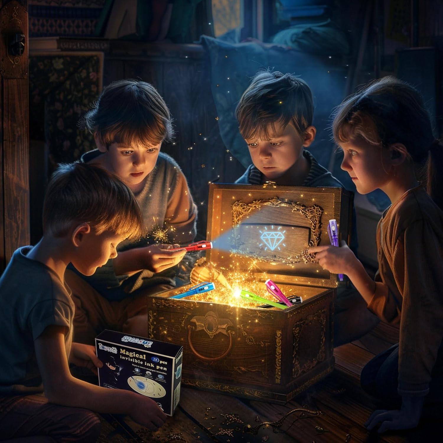 Invisible Ink Pens, 28 PCS Upgraded Spy Invisible Ink Pen with UV Light Magic Marker for Secret Message Escape Room and Kids Christmas Goodies Bags Toy, Spy Pen Party Favors for Kids 8-12