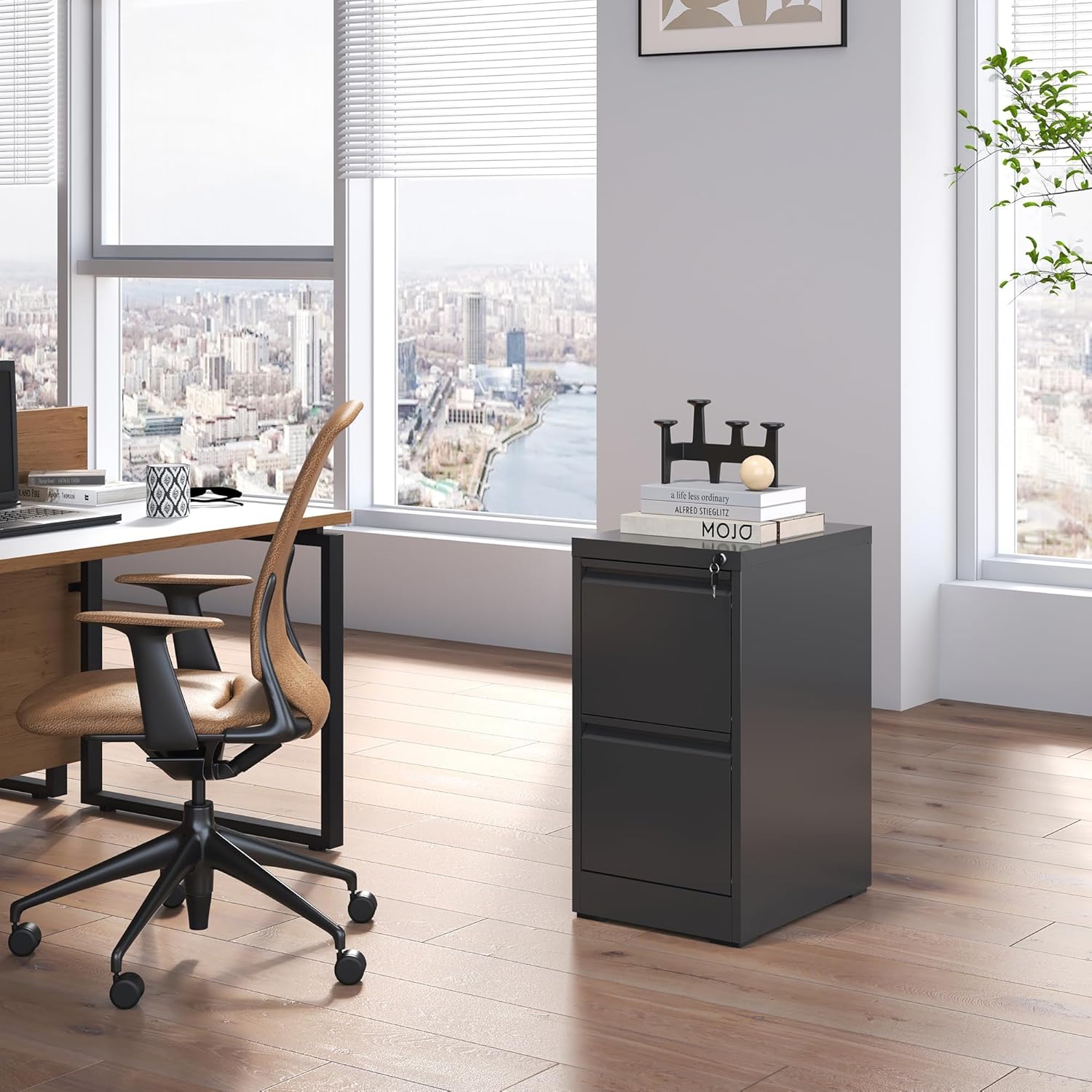 2 Drawer File Cabinet with Lock,Metal Vertical Filing Cabinets for Home Office,Heavy Duty File Storage Cabinet for Letter/Legal/A4/F4 Size File,Assembly Require (Black, Vertical 2 Drawer)