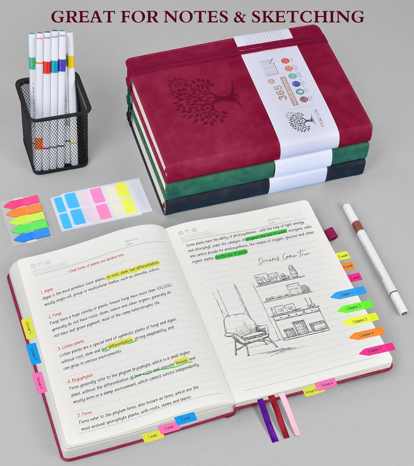 - 【365 Pages Premium Thick Lined Paper】: Our PERCUN lined journal notebook is made of 365 pages high-quality 100Gsm thick ruled pager with an acid-free light Ivory paper that is thicker than normal. This premium quality paper will not cause bleeding, ghosting or smudging and is suitable for most types of pens,provides ample space for journaling, note-taking, and creative writing. The line spacing is 7mm, making it easy to write legibly and neatly.