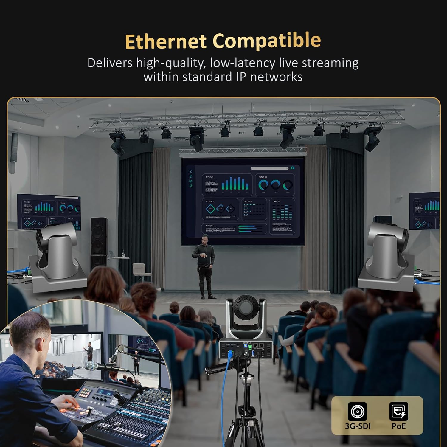 - ăPTZ Camera with AI Auto TrackingăHarnessing advanced AI Algorithms 3.0, this camera achieves monocular human auto-tracking, smoothly capturing movements with superior quality. Supporting Full HD 1080P video output at up to 60fps, it delivers true-to-life colors. It's ideal for Church live services, Schools, Live Streaming, Broadcasts, Hospitals, Weddings, and Houses of Worship.