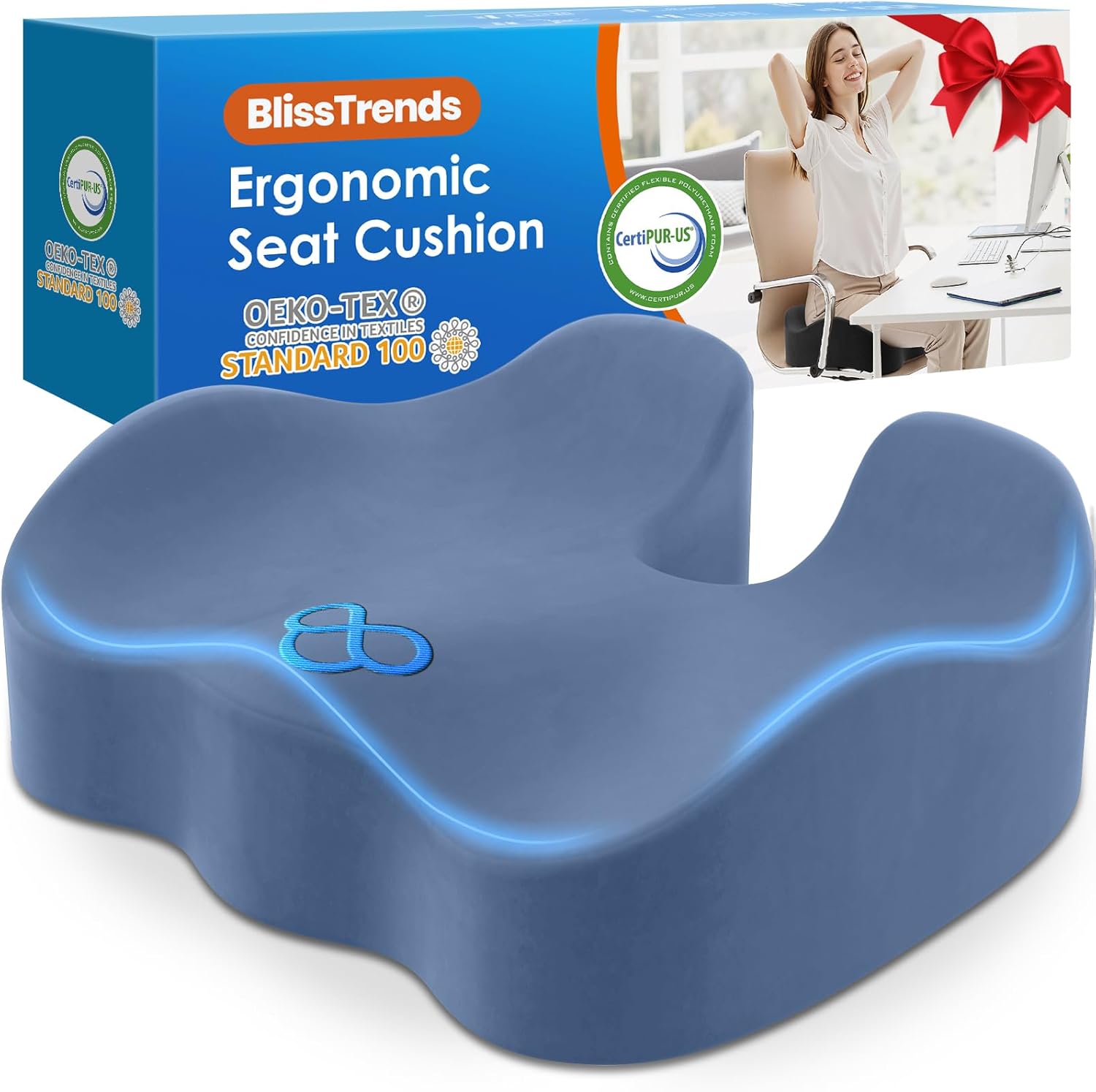 BlissTrends Seat Cushion,Thick Memory Foam Cushions for Office Chair, Car Seat, Airplane, Relieving Pressure Tailbone Sciatica Back Pain for Office Workers, Car Drivers 4.7in Thick LightBlue