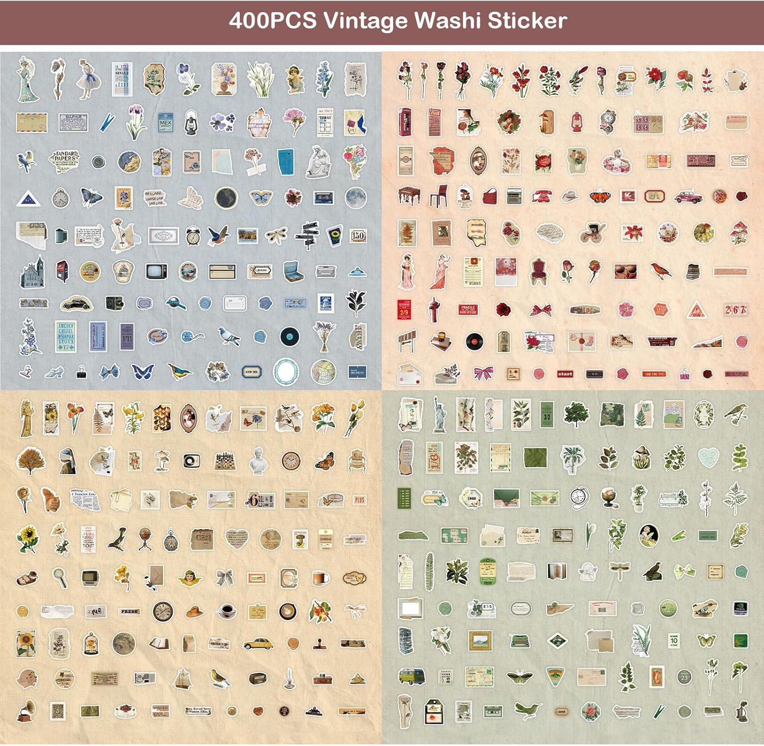 Maxleaf Vintage Washi Sticker Set, 400PCS Floral Retro Nostalgic Ephemera Stickers for Scrapbooking Journaling DIY Crafts Planner Diary Album Handmade Work Journal Envelope Gift Wrapping