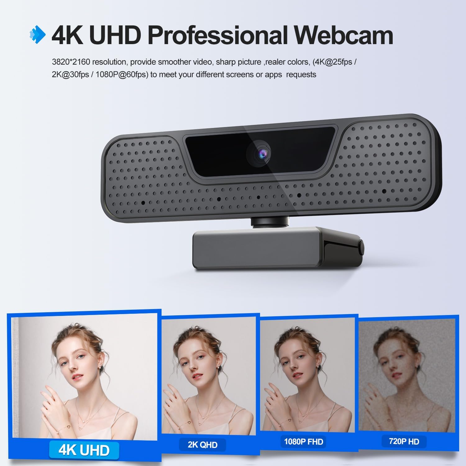 - Unmatched Clarity Solid 4K Streaming & Full HD Video: High-definition 4K 8-megapixel PC external webcam with 1/3”CMOS image sensor features up to a 3840*2160 resolution at 30fps. No false upscaling, only pure 4K quality. Ideal for remote business meetings where every detail matters. The 4K webcam for laptop provides ultra-clear visuals that make you feel like you're in the same room with your colleagues, students, or audience