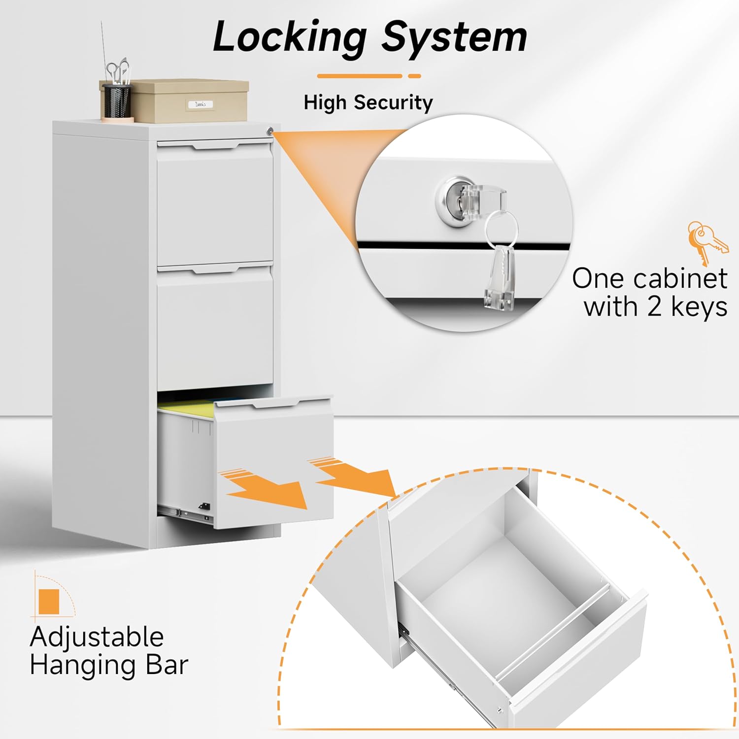 - 🛎️【SMOOTH MUTE SLIDE RAILS】: Our metal file cabinets are made with full retractable mute slide rails, open and close smoothly, easy to pick up and put down folders without noise. Perfect for office, home and school use. And the vertical appearance design can maximize the effective use of space, so that your space is not wasted!