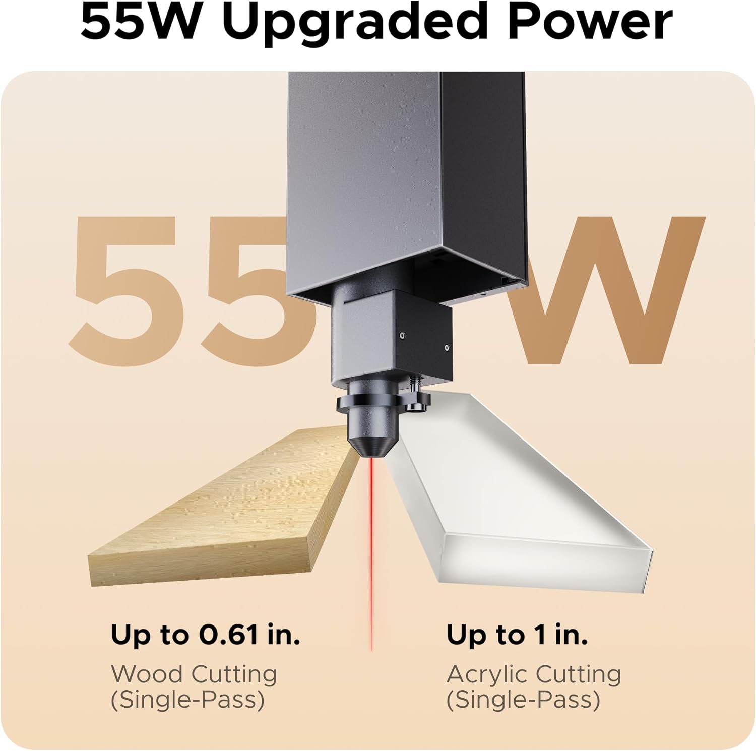 - Easy Setup Anywhere: At just 90.4 lb., this compact laser cutter is easy to move and set up wherever you need it. Whether you're working in tight spaces, switching between projects, or taking it to events, you can quickly relocate and get to work