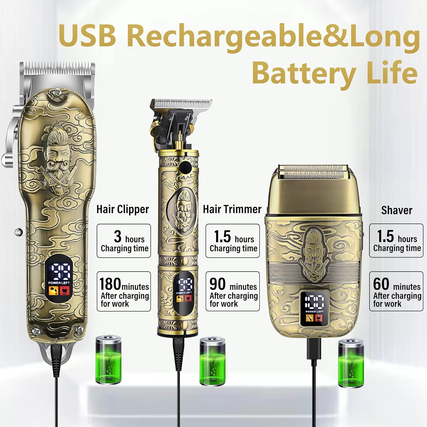 - USB Rechargeable and Long Battery Life:Offers up to 180 minutes of running time with charging 3 hours for the hair clipper. 90 minutes of running time with charging 1.5 hours for the detailed trimmer.Hair shaver which can provide 60 minutes of operation time with only 1.5 hour of charging.USB charging port, you can connect USB adapter, laptop, car charger
