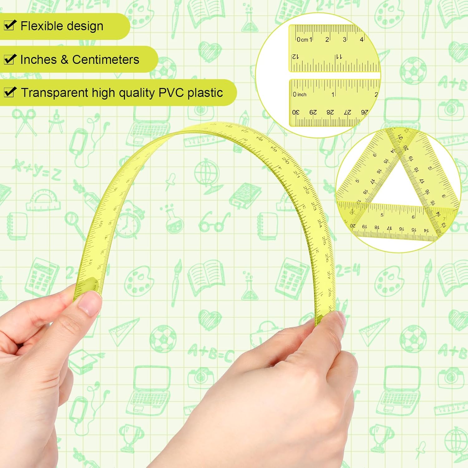 Zonon 2 Pack 12'' Plastic Ruler and 6'' Plastic Protractor Set Clear Ruler Protractor Set Math Geometry Supplies for School Classroom Home Office Drawing(Yellow)