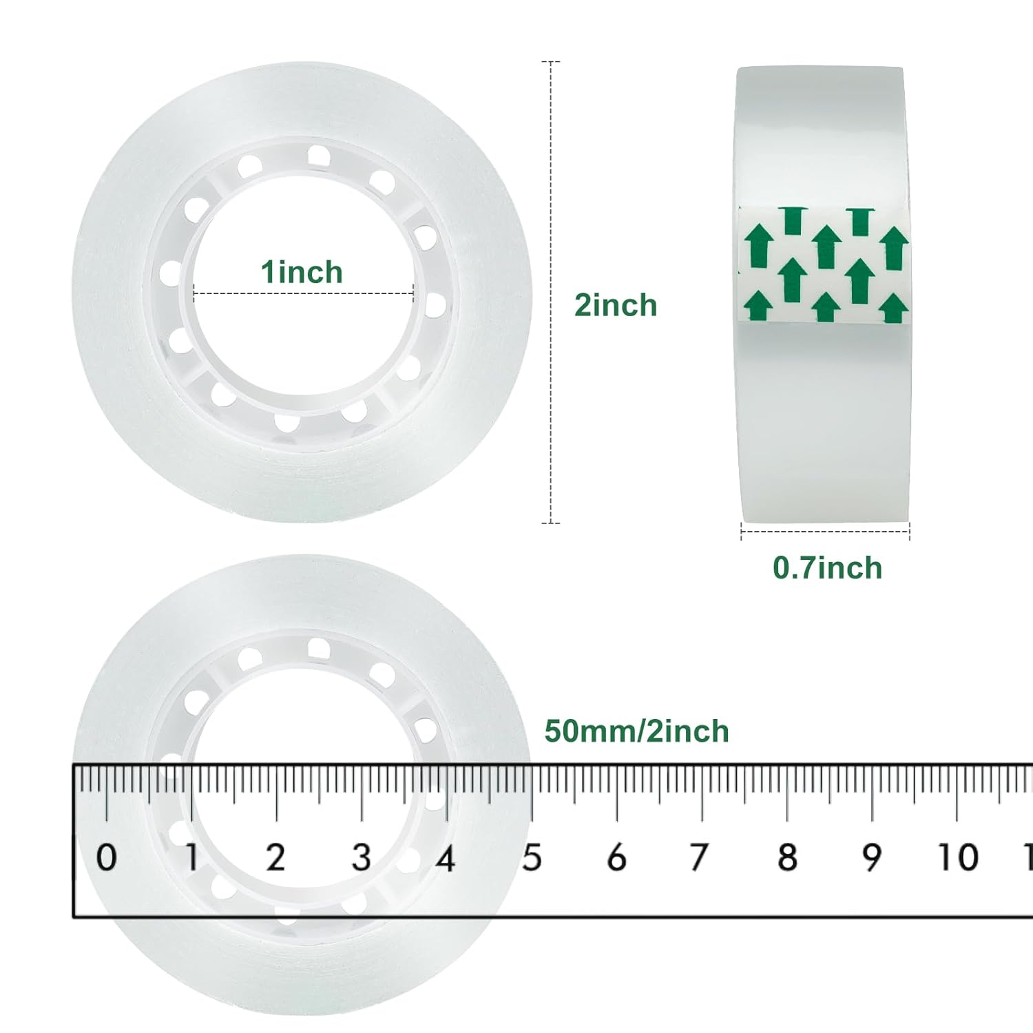 - Suitable size: The refill width of each roll of transparent tape is 3/4 inches/18 millimeters, and the length of each roll is 1000 inches. Gift tape inner diameter is 1 inch/25.8 millimeters, outer diameter is 2.1 inches/53 millimeters, color: transparent, quantity: 24 pieces