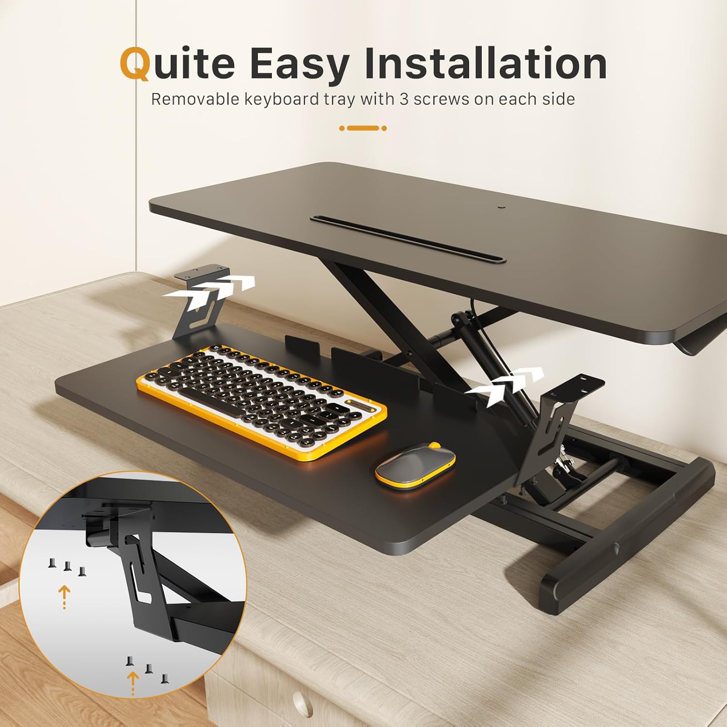 JOY worker Standing Desk Converter, 35" Wide Height Adjustable Sit Stand Up Desk Riser with Keyboard Tray, Desktop Workstation Riser for Home Office Computer Laptop, Particle Board, Black