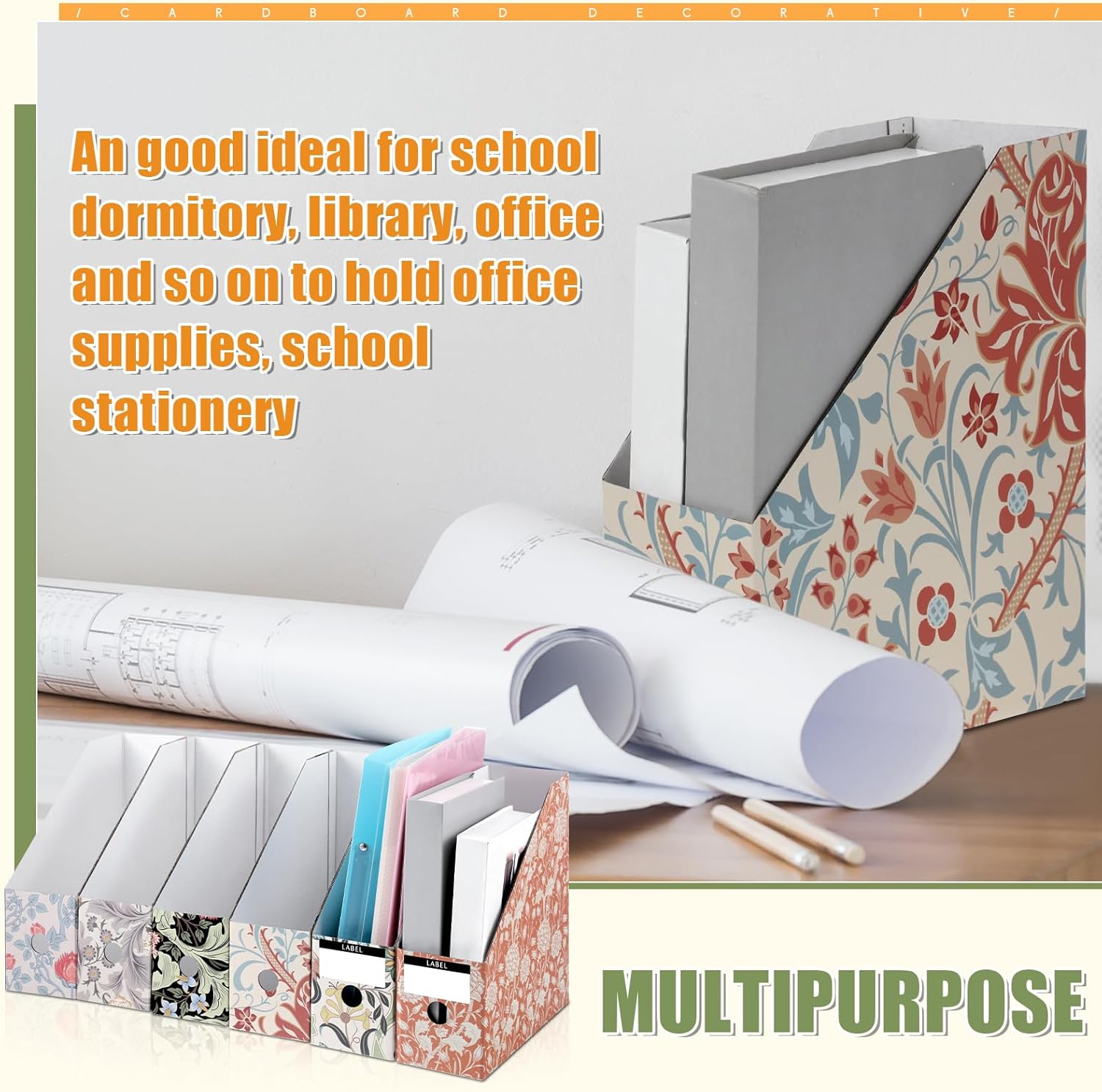 PerKoop 6 Pcs Magazine File Holder Foldable Decorative Cardboard File Folders 6 Patterns Floral Colored Magazine Rack with Printable Sticker Labels for School Office Home Desk (Floral)