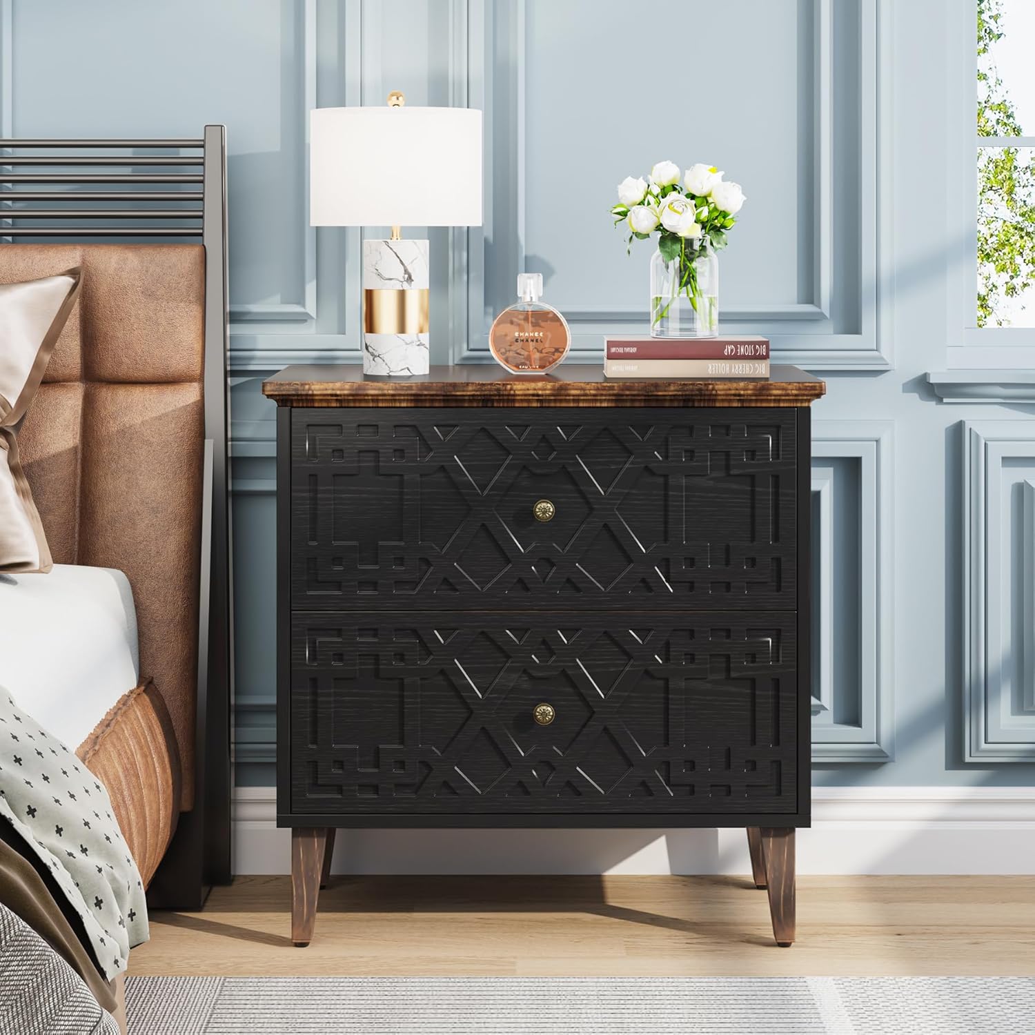 LITTLE TREE 2-Drawer File Cabinet, Lateral Filing Cabinet for A4/Letter/Legal Size, Office Storage Cabinet, Printer Stand with Storage Drawer for Home Office, Black
