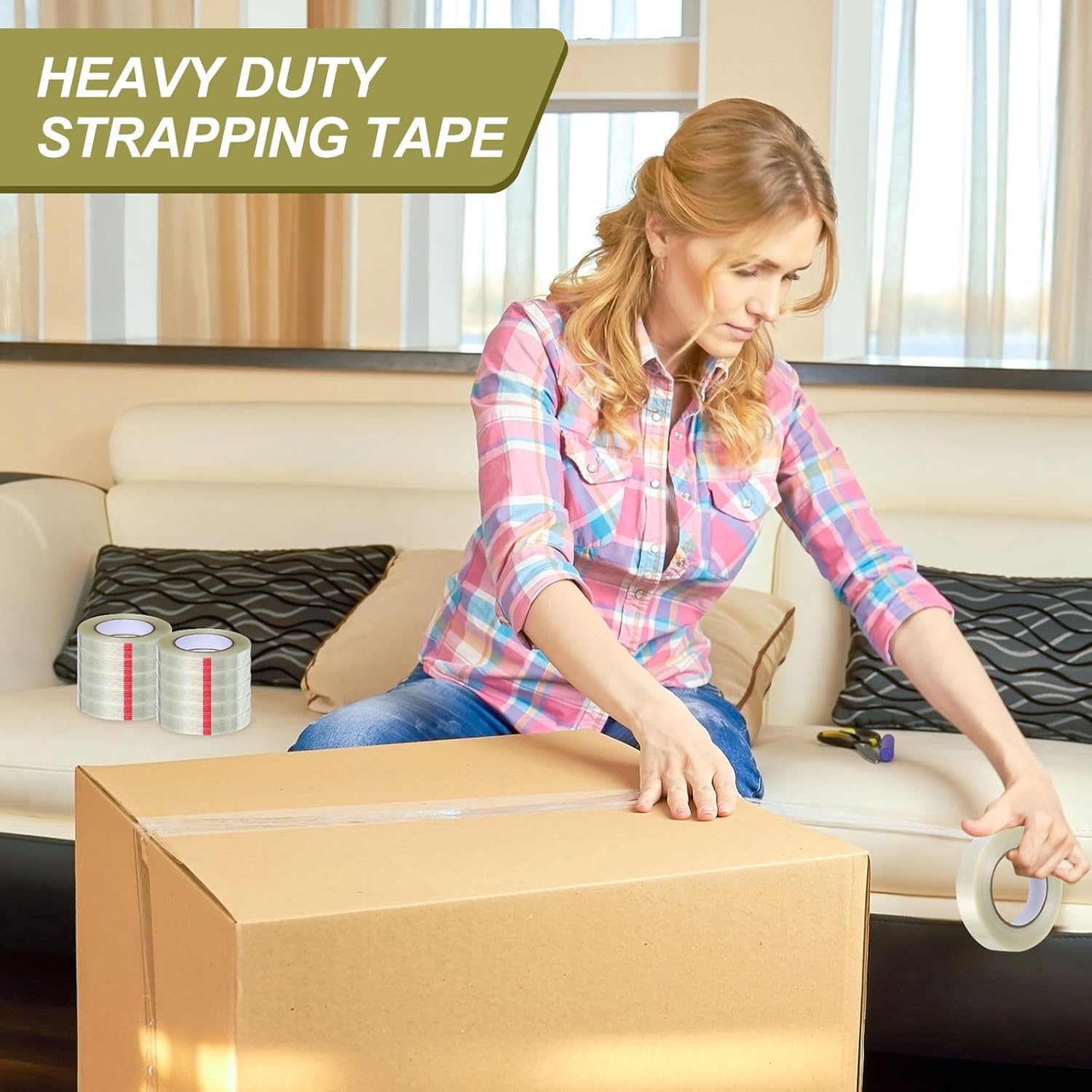 - Reinforced Strength: the strapping tape heavy duty features high tensile 5.5 mil thickness, tear resistant, which can not be torn by hand and need to be cut with knives or scissors, suitable sealing, binding and fixing