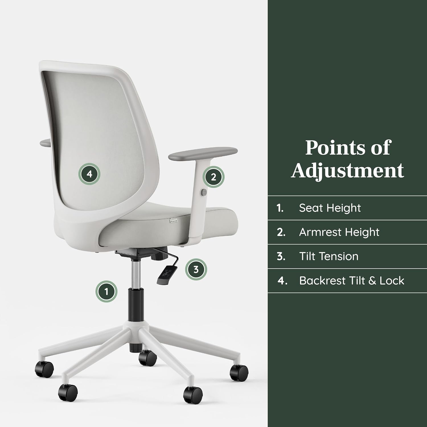 Branch Daily Chair - Vegan Leather Office Chair with Swivel, Lumbar Rest, and Adjustable Armrests - Comfortable Seating for Improved Posture and Productivity - Limestone
