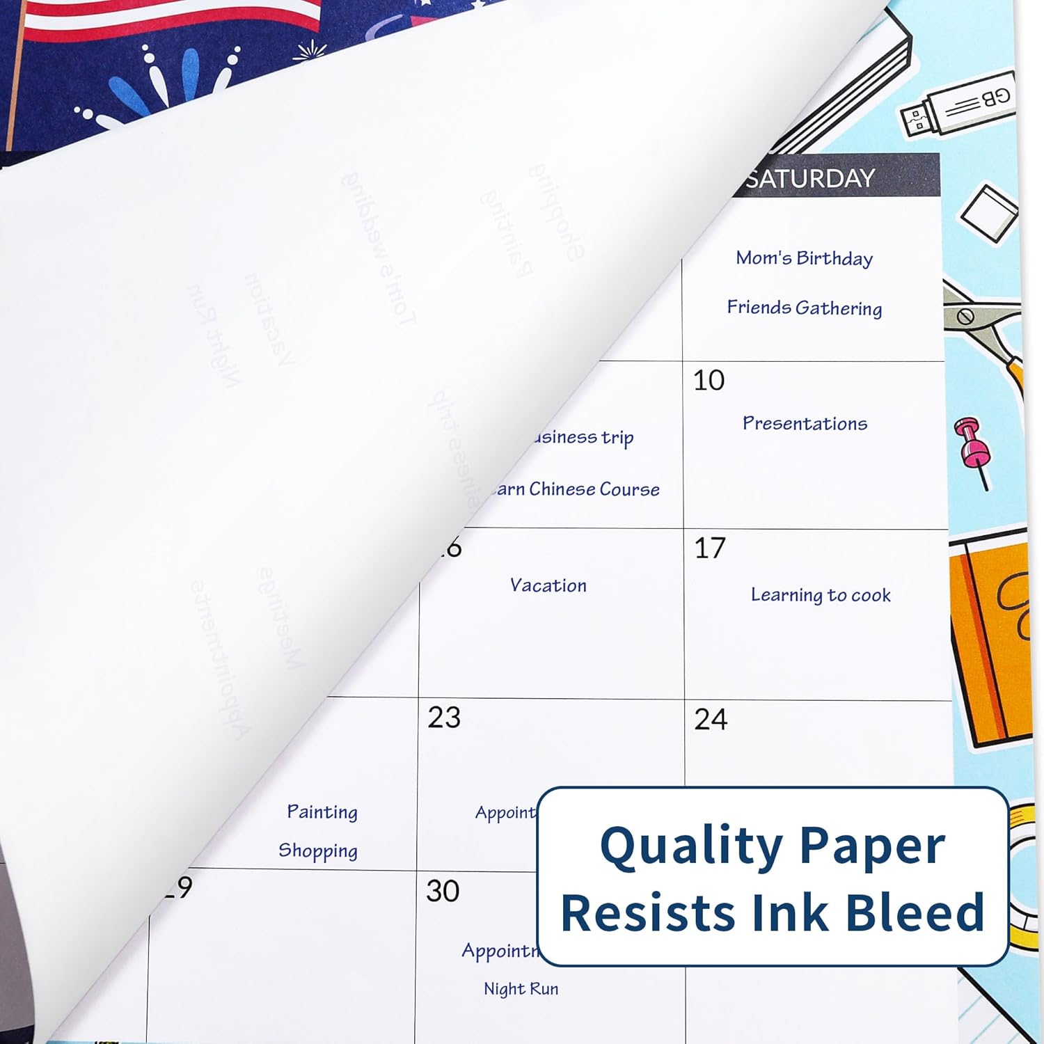 - No Bleeding: The writing paper with 2.25"x1.75" daily blocks is compatible with most pens, like fountain pens, ballpoint, pencils, and highlighters