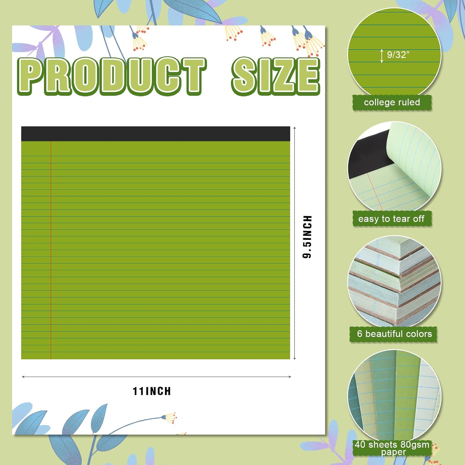 - Enough to Use and Share: each package includes 6 pads of lined notepads 11 x 9.5 inches in 6 different colors, with 40 sheets in each pad, a total of 240 sheets; This ensures a generous quantity to last you for multiple projects or an extended period of time; And you can share them with your family and friends