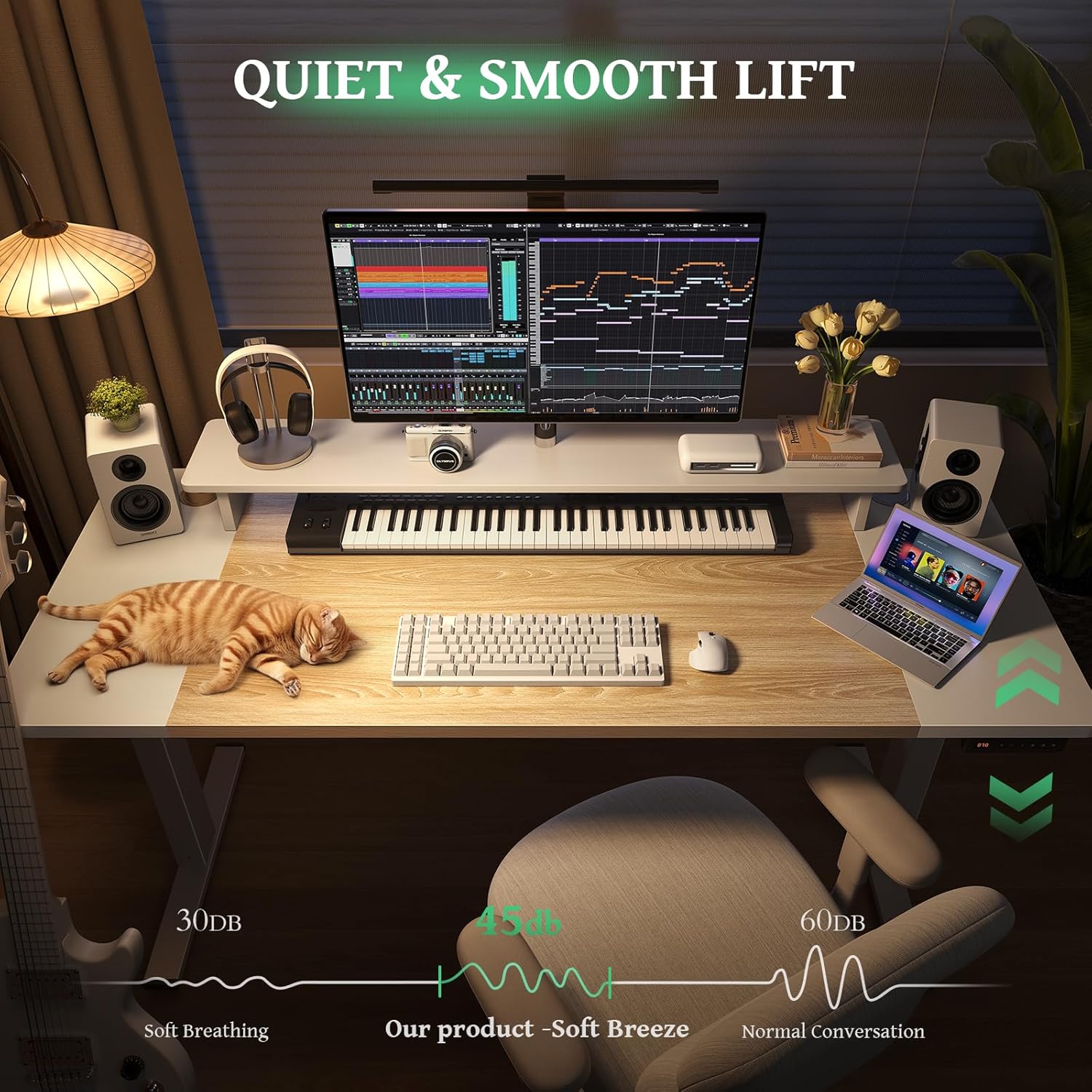 - Customized Sit Stand Desk : The reliable motor operates quietly (under 45 dB)and smoothly, all your things stay steady&secure in motion. The intuitive control panel allows you to preset 3 preferred heights, switch between sitting and standing positions has never been easier. Child lock for total peace of mind.