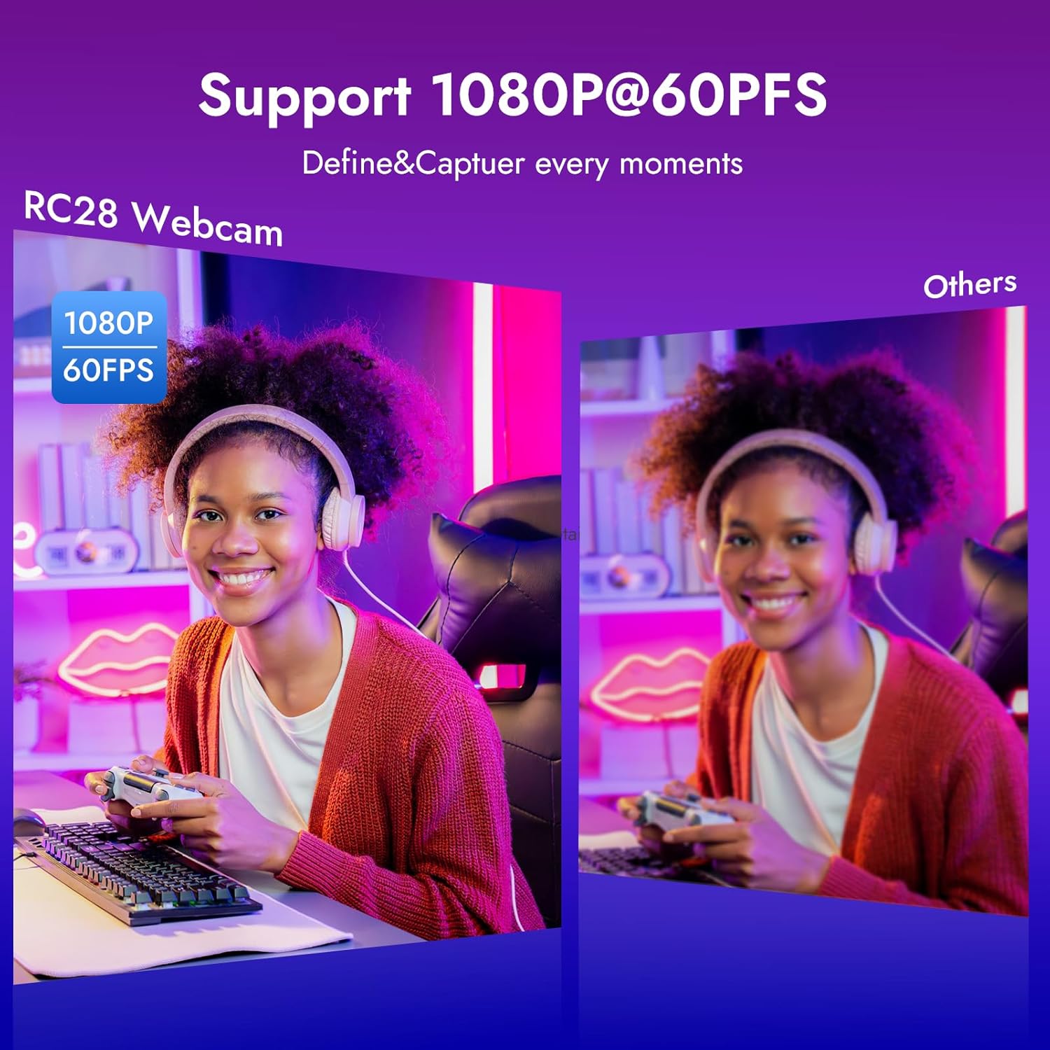 - 🎤 Dual-Mic Audio with 3 Smart Modes: Designed for professionals, the RC28 features an omnidirectional mic for immersive ambient sound and a cardioid mic that isolates your voice in noisy settings. Switch between Hi-Fi, Noise-Cancel, and Raw Audio modes with one click. Whether you're on a group call, podcasting, or streaming, this webcam with microphone adapts perfectly to your environment.