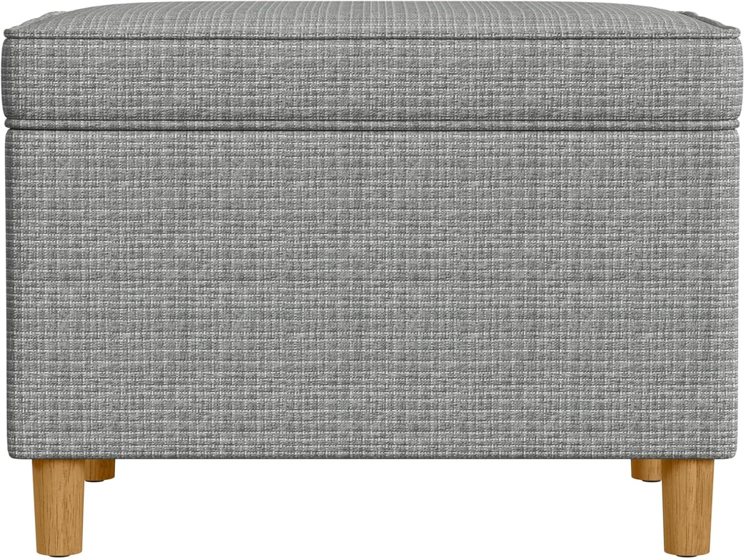 - STORAGE OTTOMAN: Our Accent Piece Fabric Ottoman features a hinged lid and with its versatility can be used as a Foot Stool Ottoman or Vanity Seat | Perfectly completed with tapered wood legs in a natural finish along with stitching details for added interest