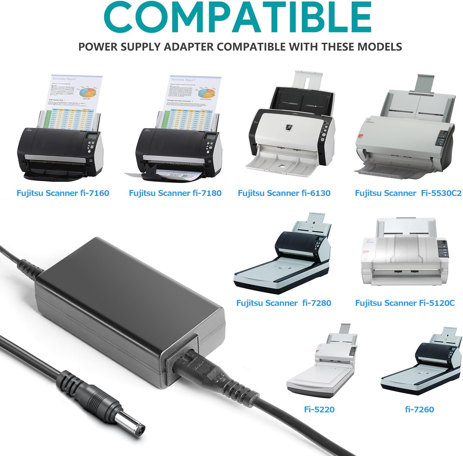 TAIFU 24V AC Adapter for Fujitsu Scanner fi-7160 fi-7260 fi-7180 fi-7260 fi-7280 FI-6130 Fi-5120C Fi-5220 Fi-5530C Fi-6110 Fi-6140 Fi-6230 Fi-6240 PA03540-K909 Document Scanner Power Supply Cord